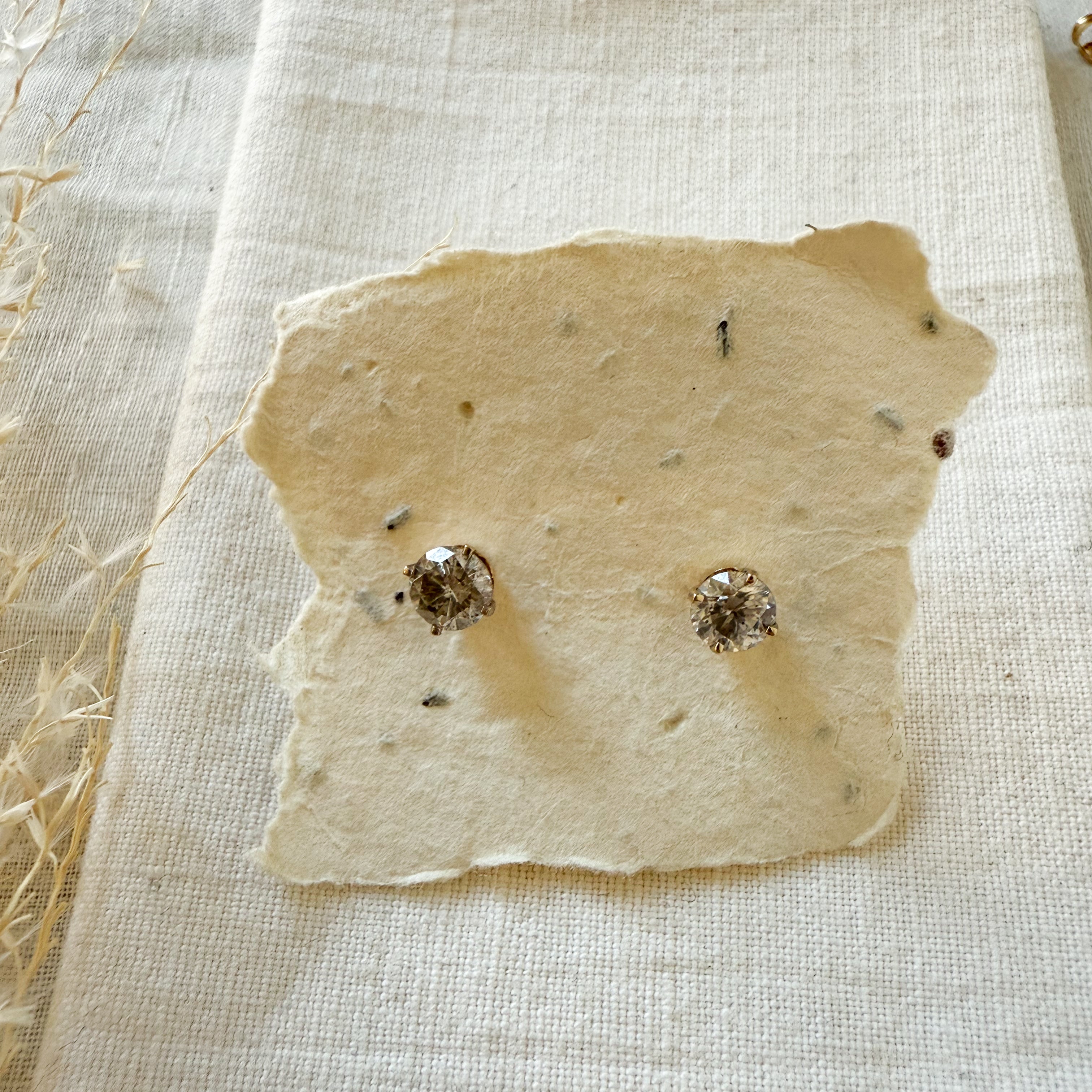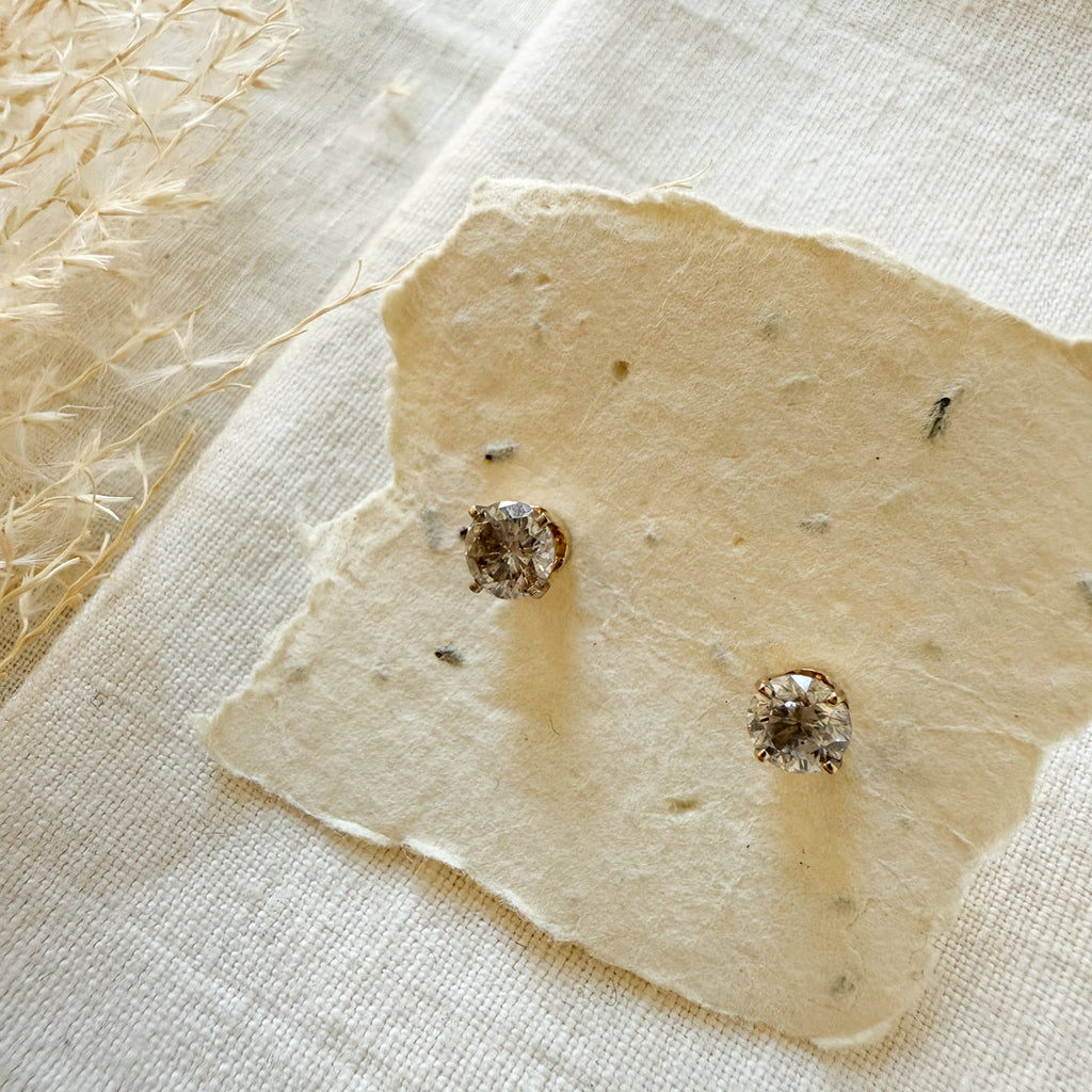 14K yellow and white gold diamond set stud earrings