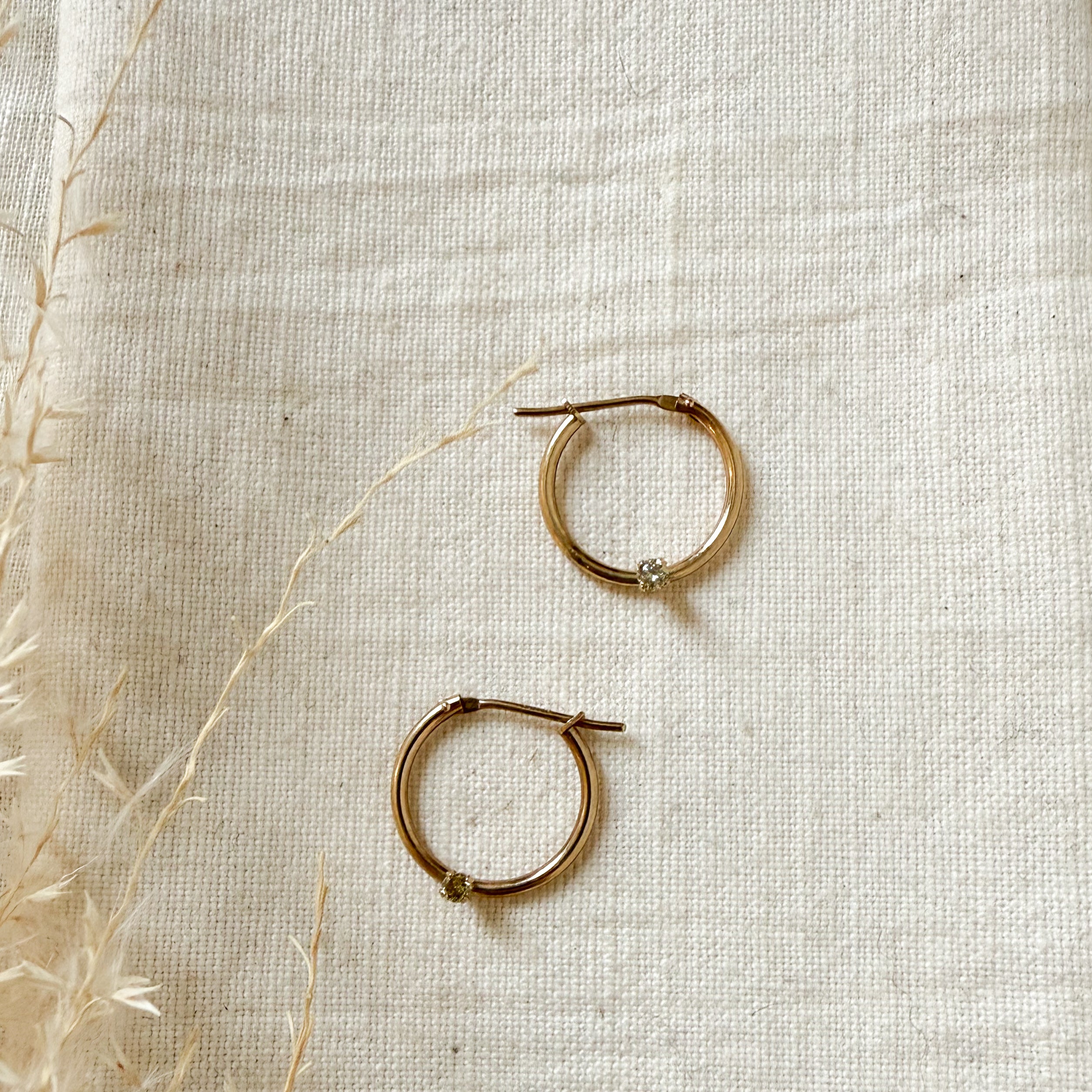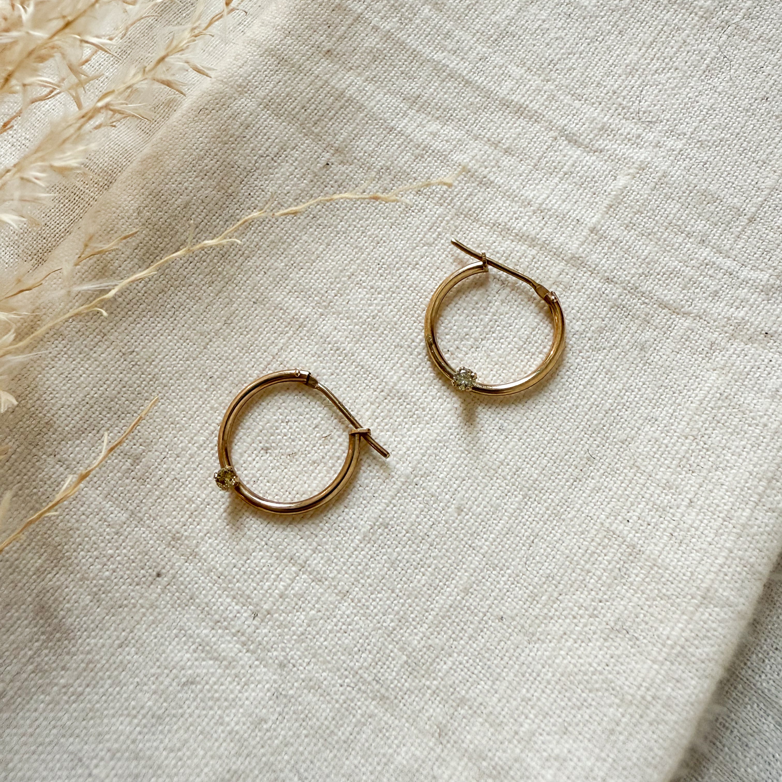 10k yellow gold hoops with diamonds