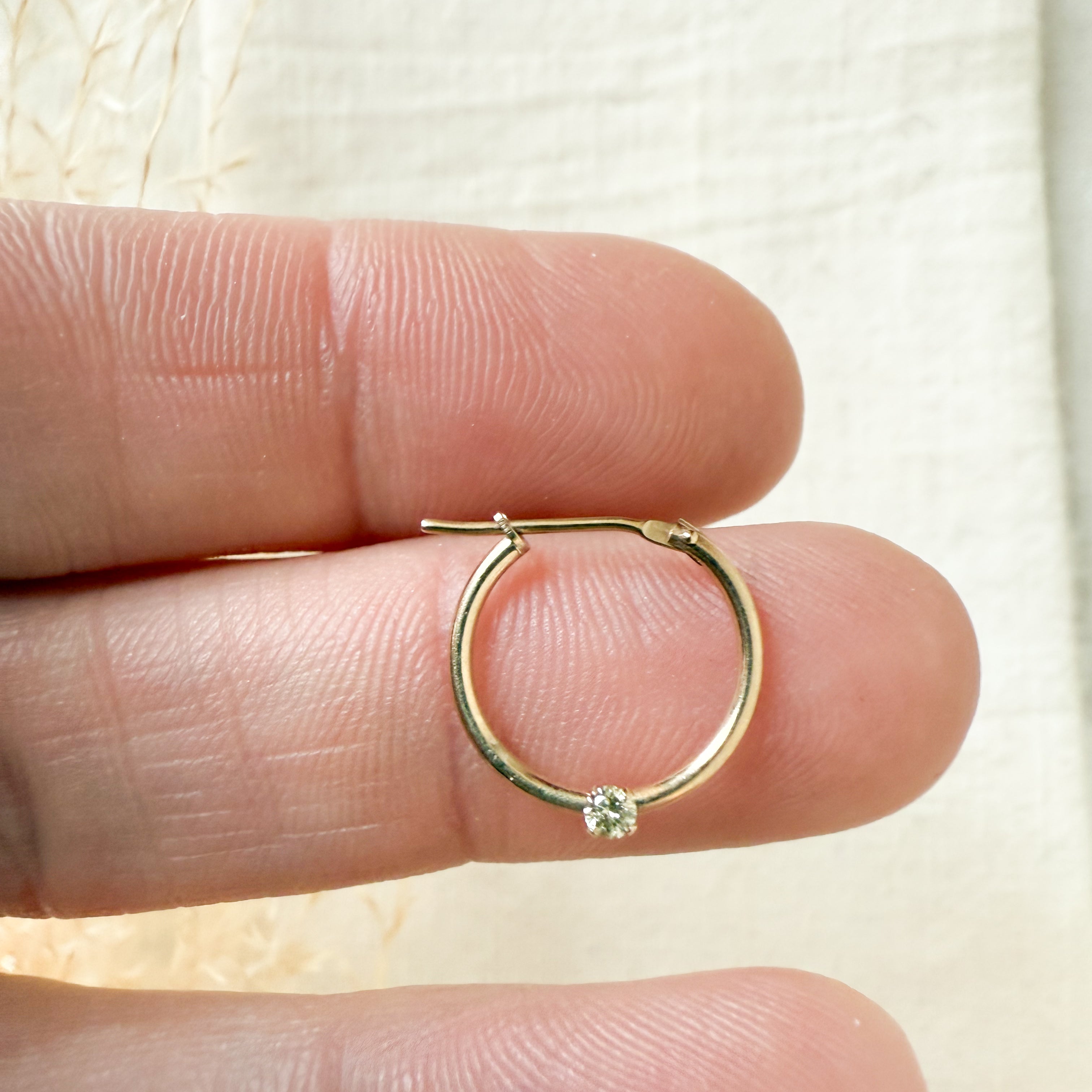 Petite every day hoops that measure 10mm and set with .06ct diamond in each earring. Clarity/colour I1/J-K.