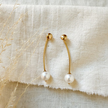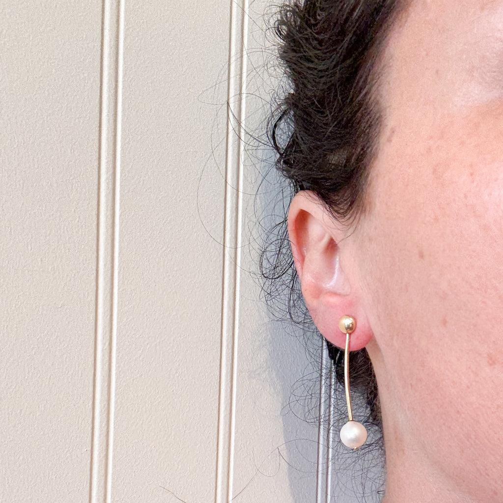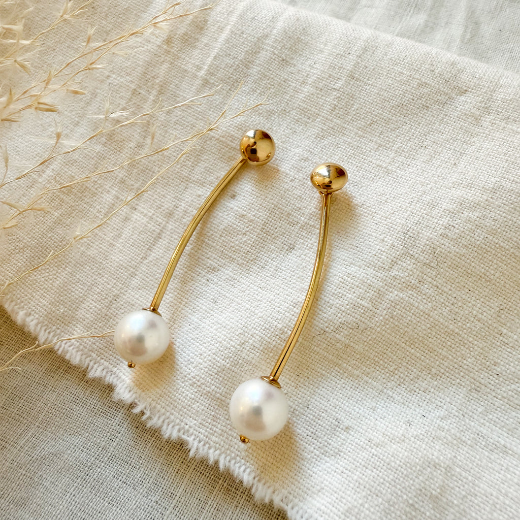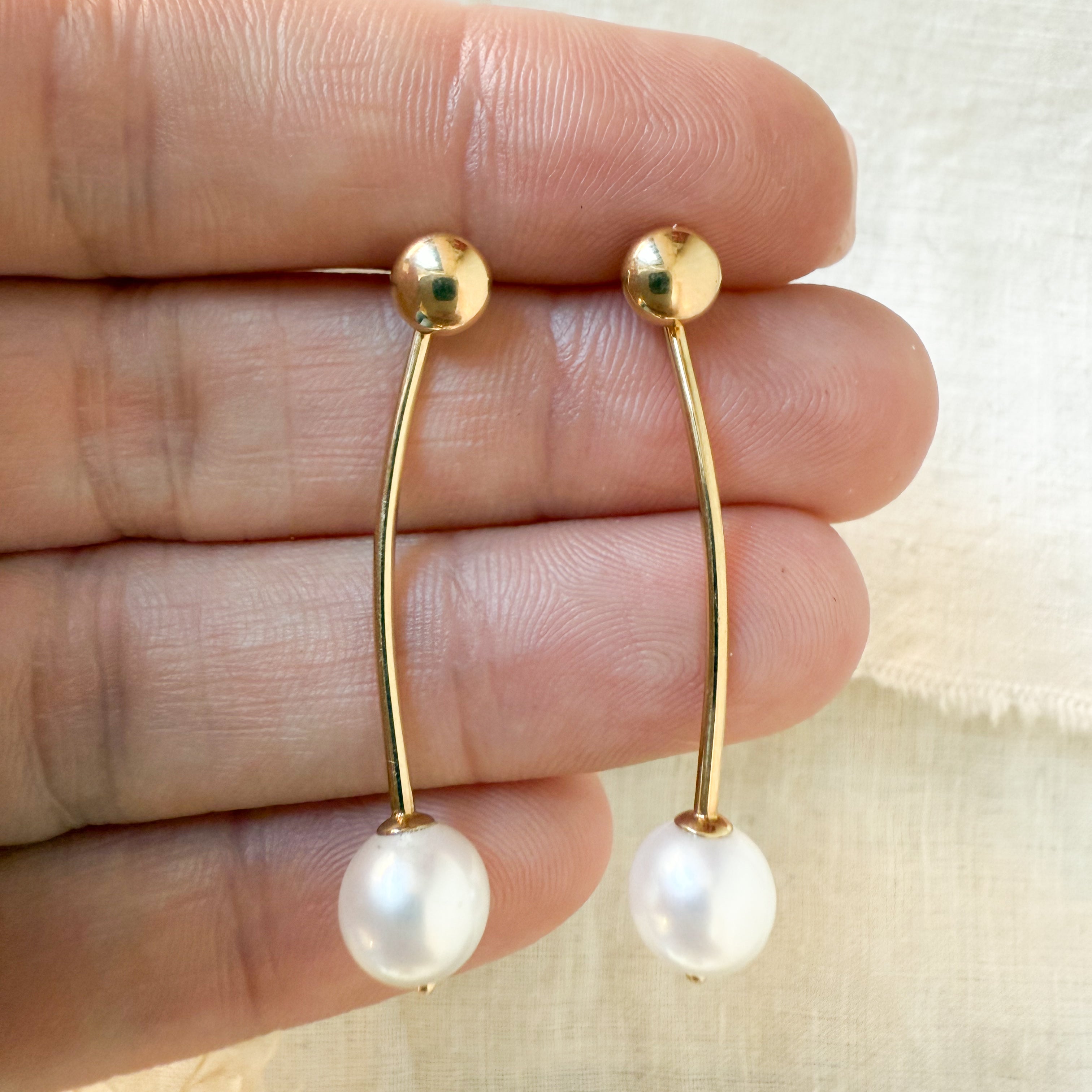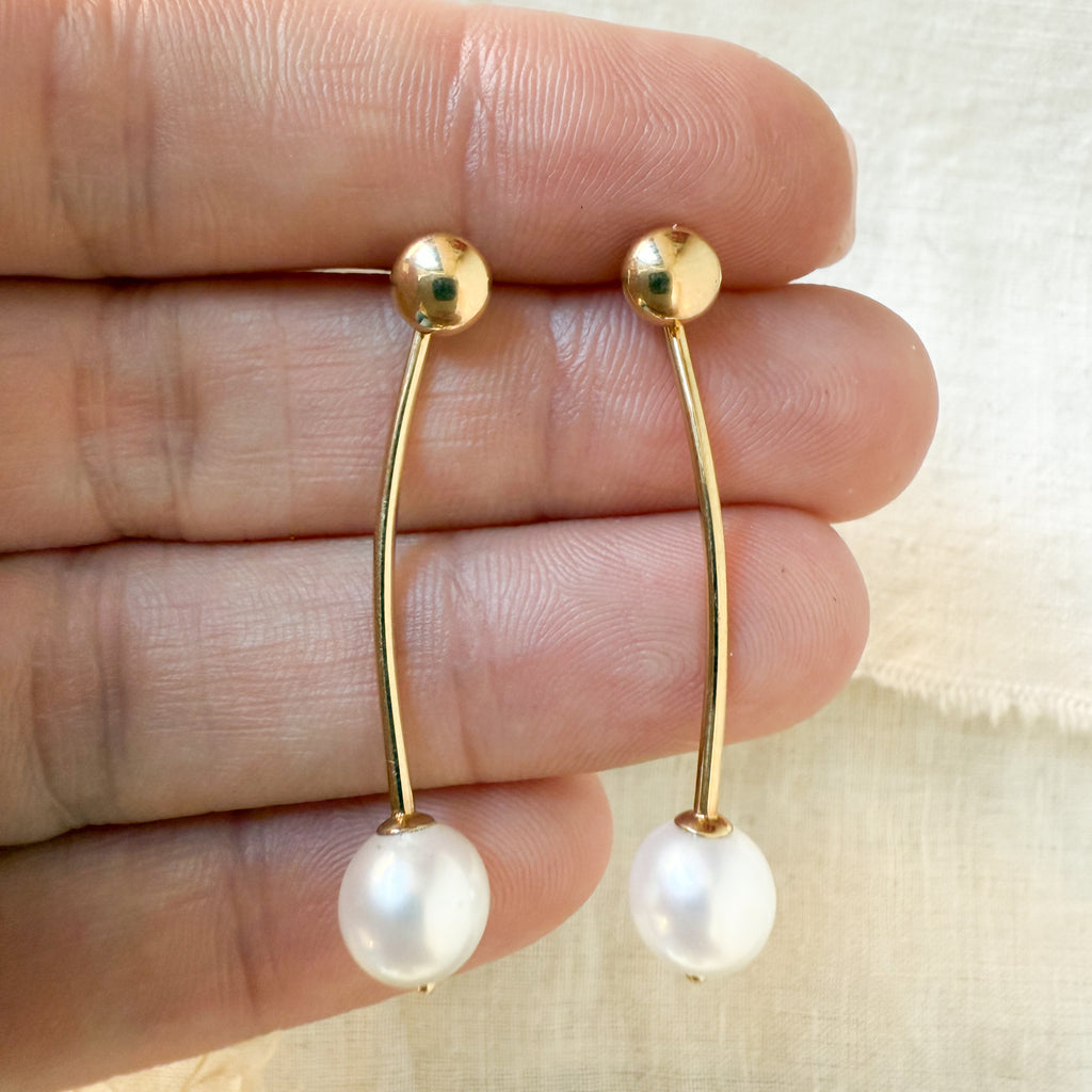 14k yellow gold pearl drop earrings