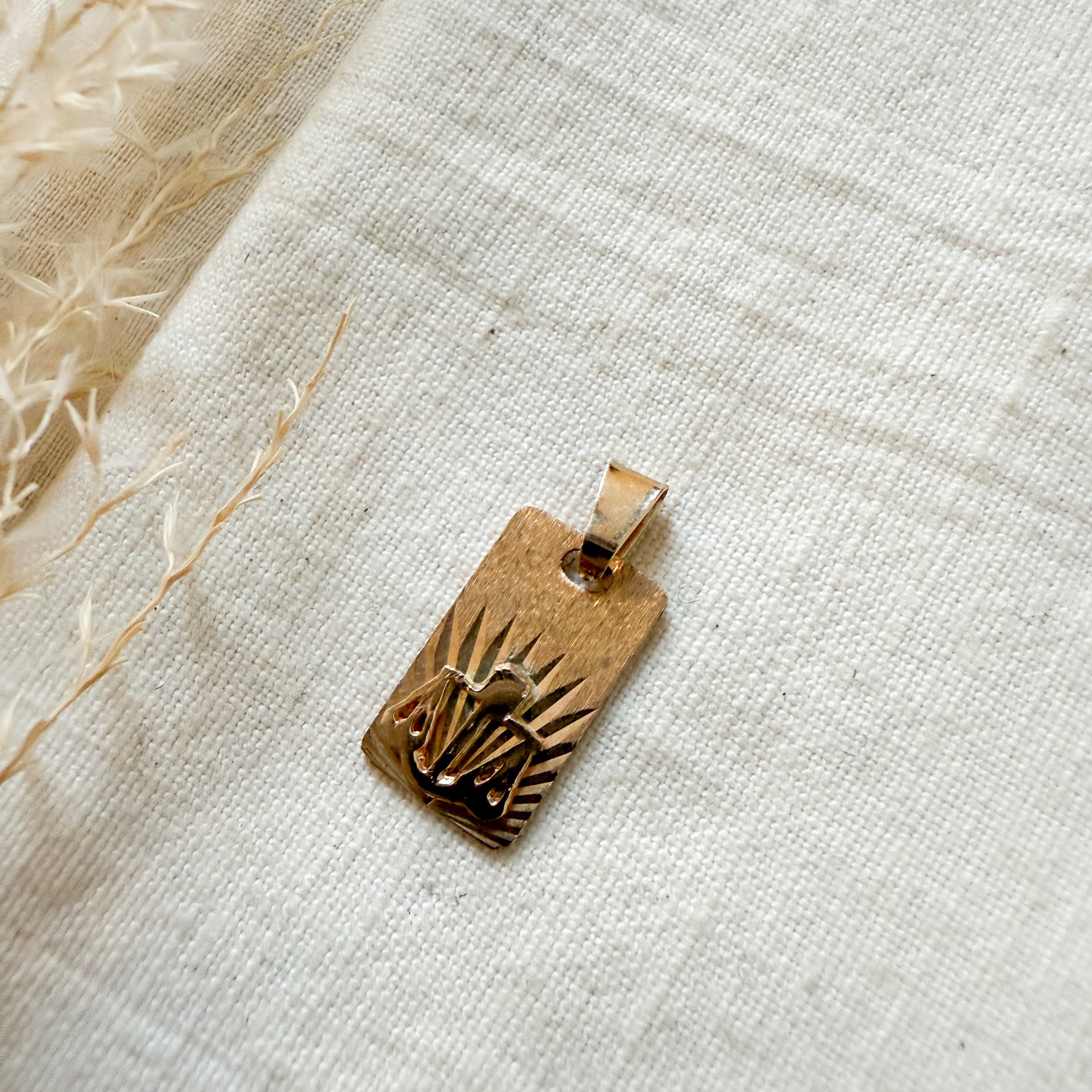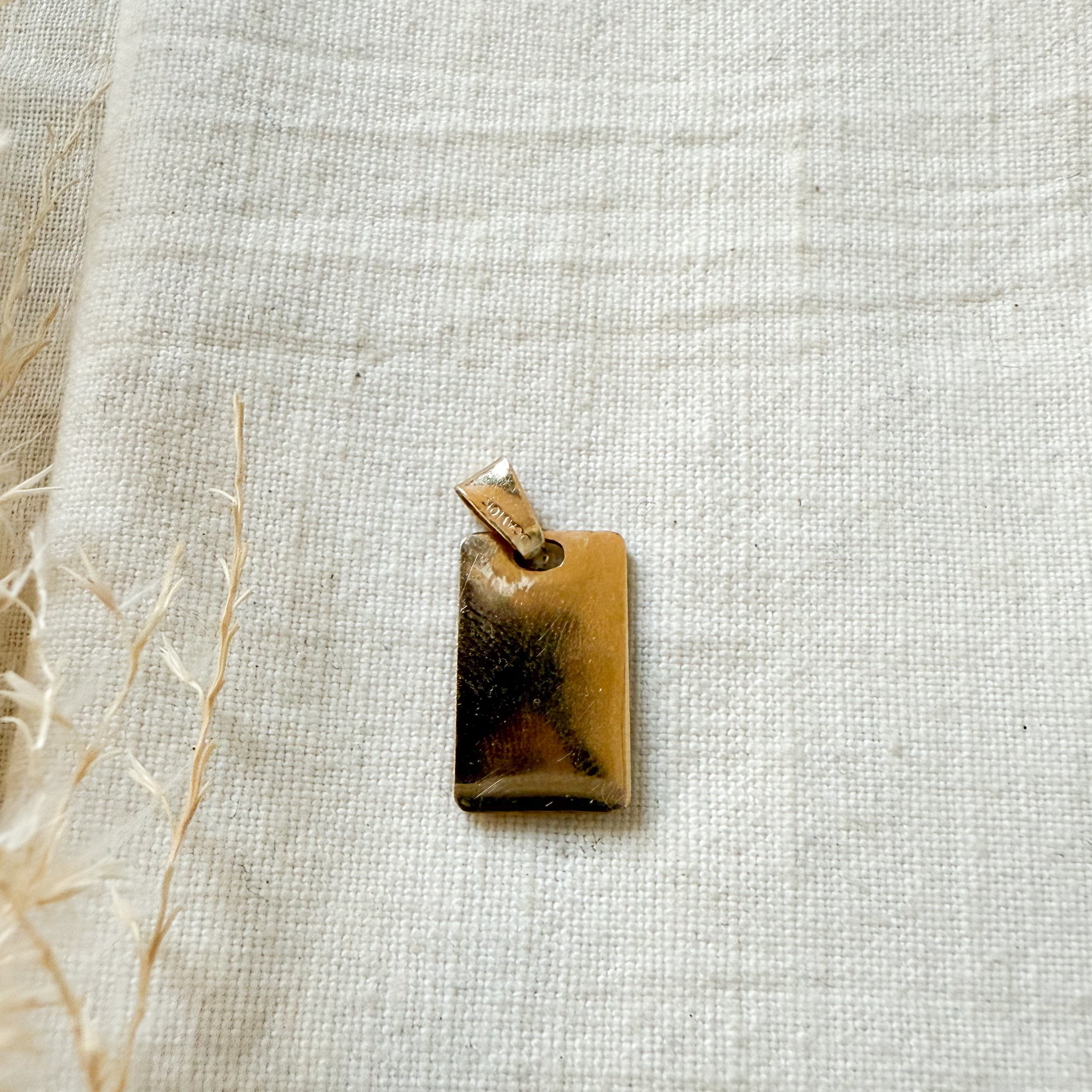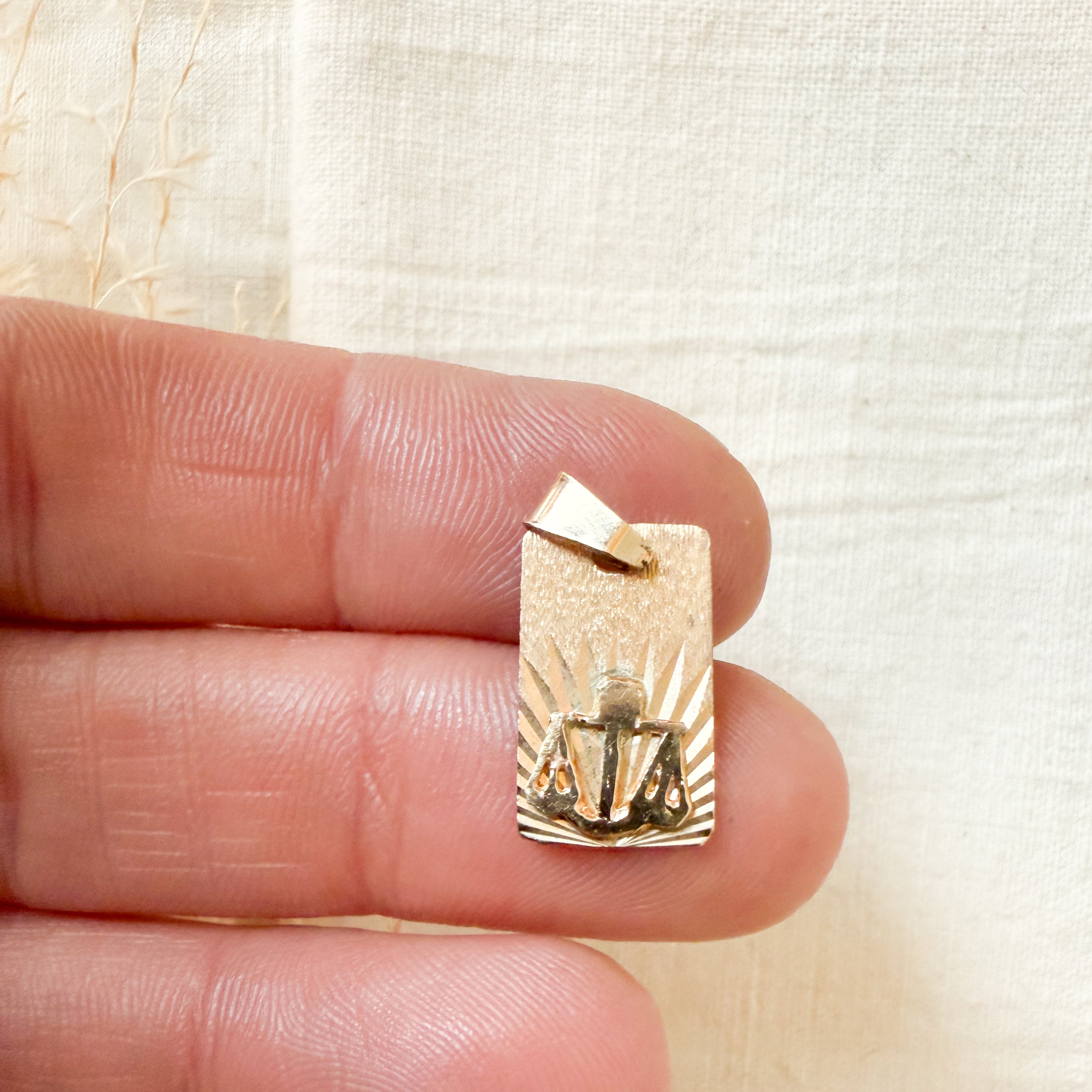 Rectangular dog tag style with a raised libra symbol Claw set with a measuring 2.3 x 1 weighing 1.2 grams