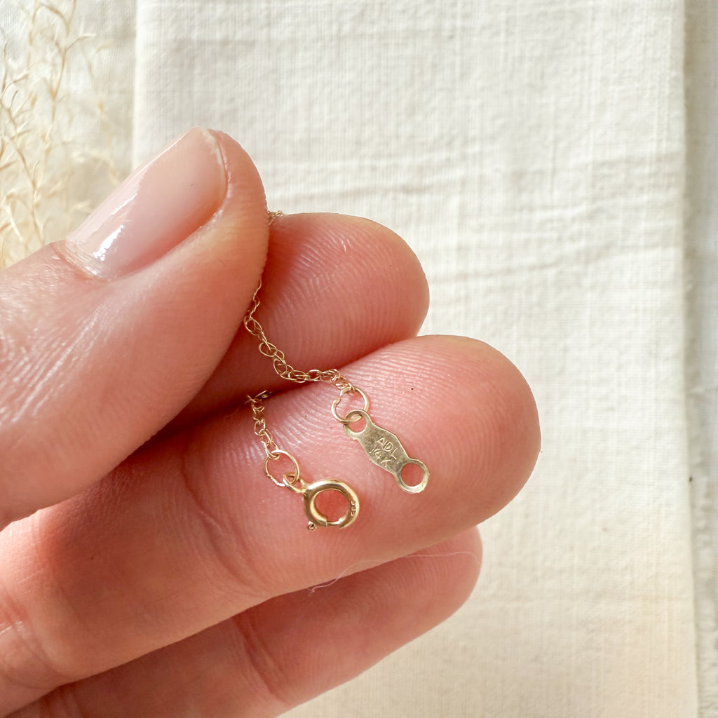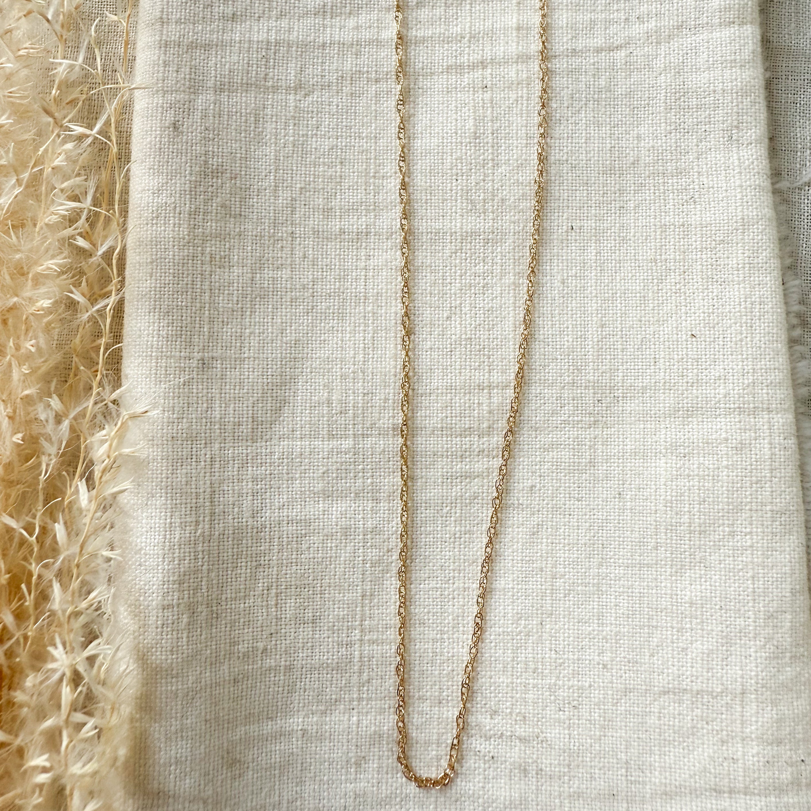 Measuring .5mm width. Weighing .5grams. 18" length with spring ring clasp.