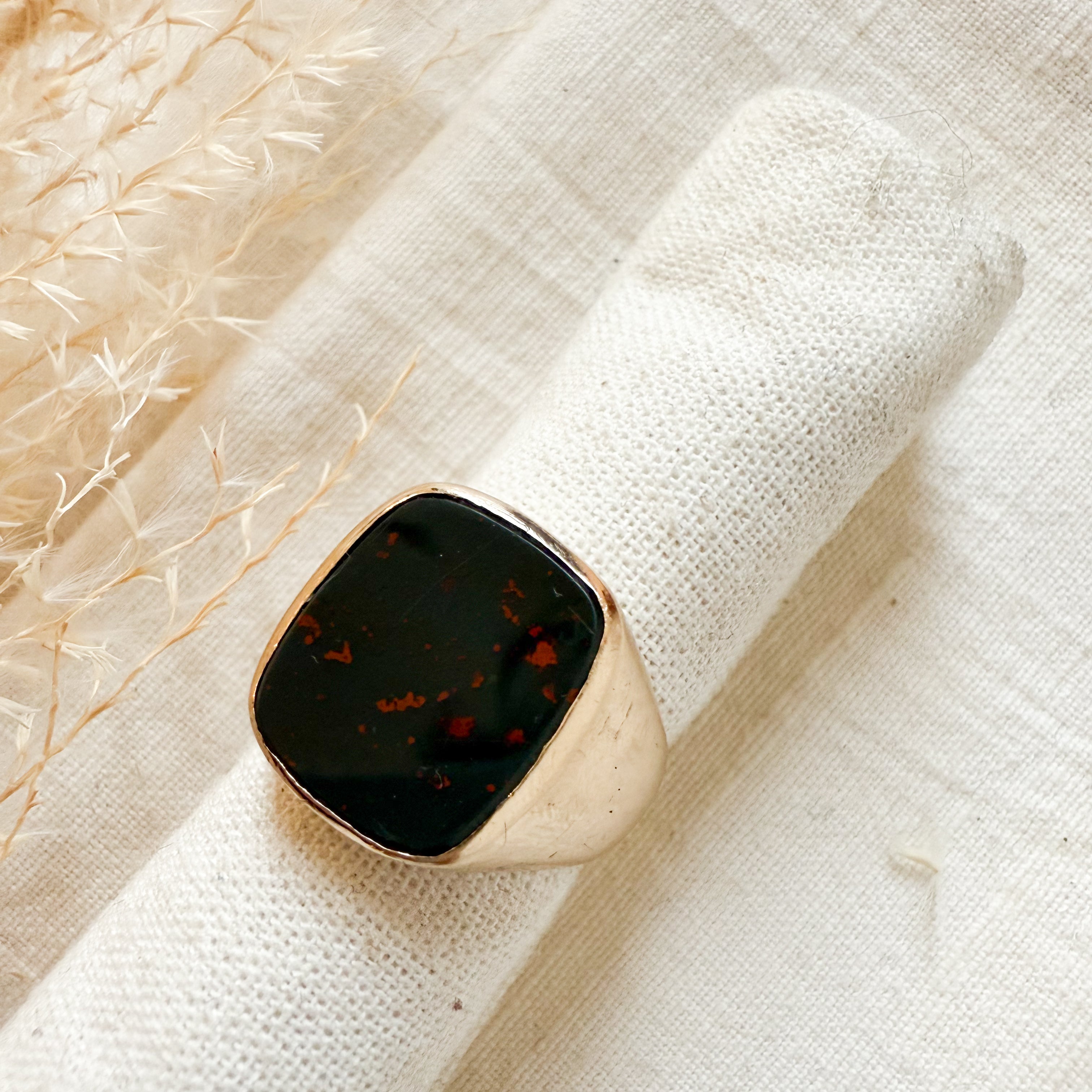 Gentlemen's 14k yellow gold bloodstone signet style ring