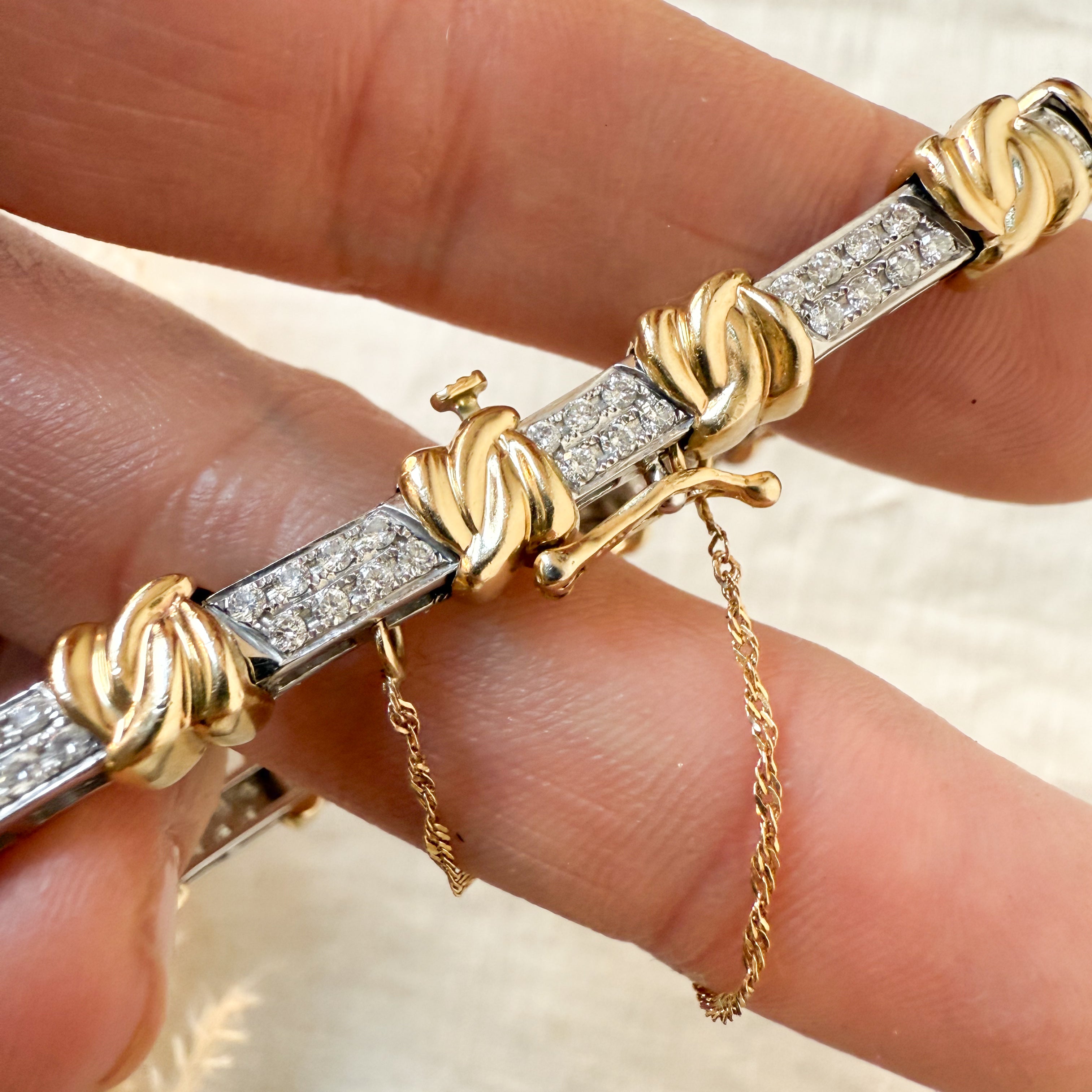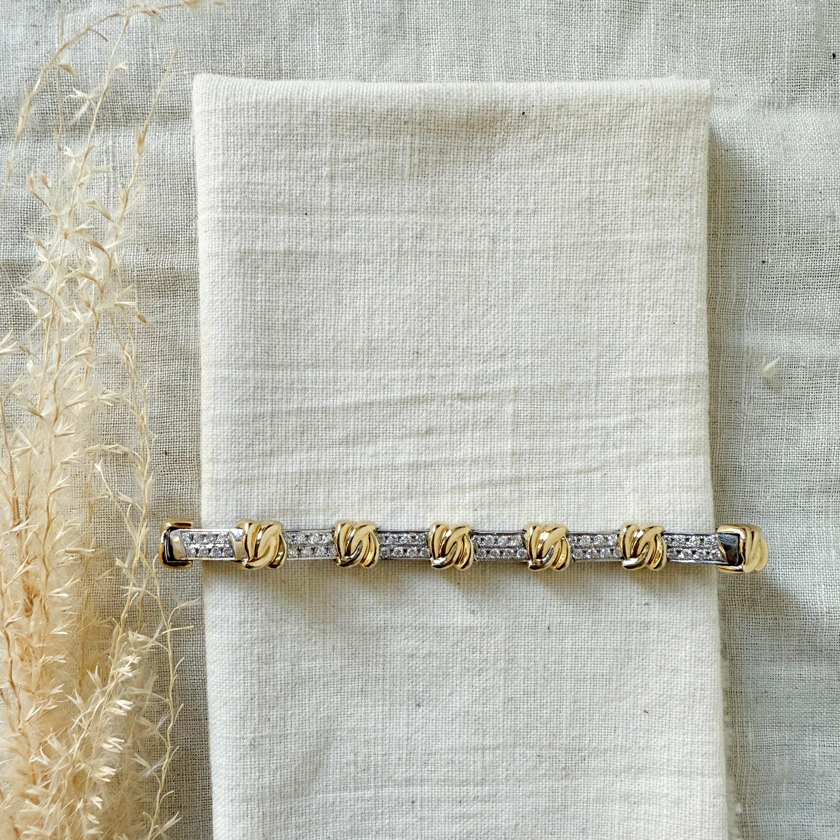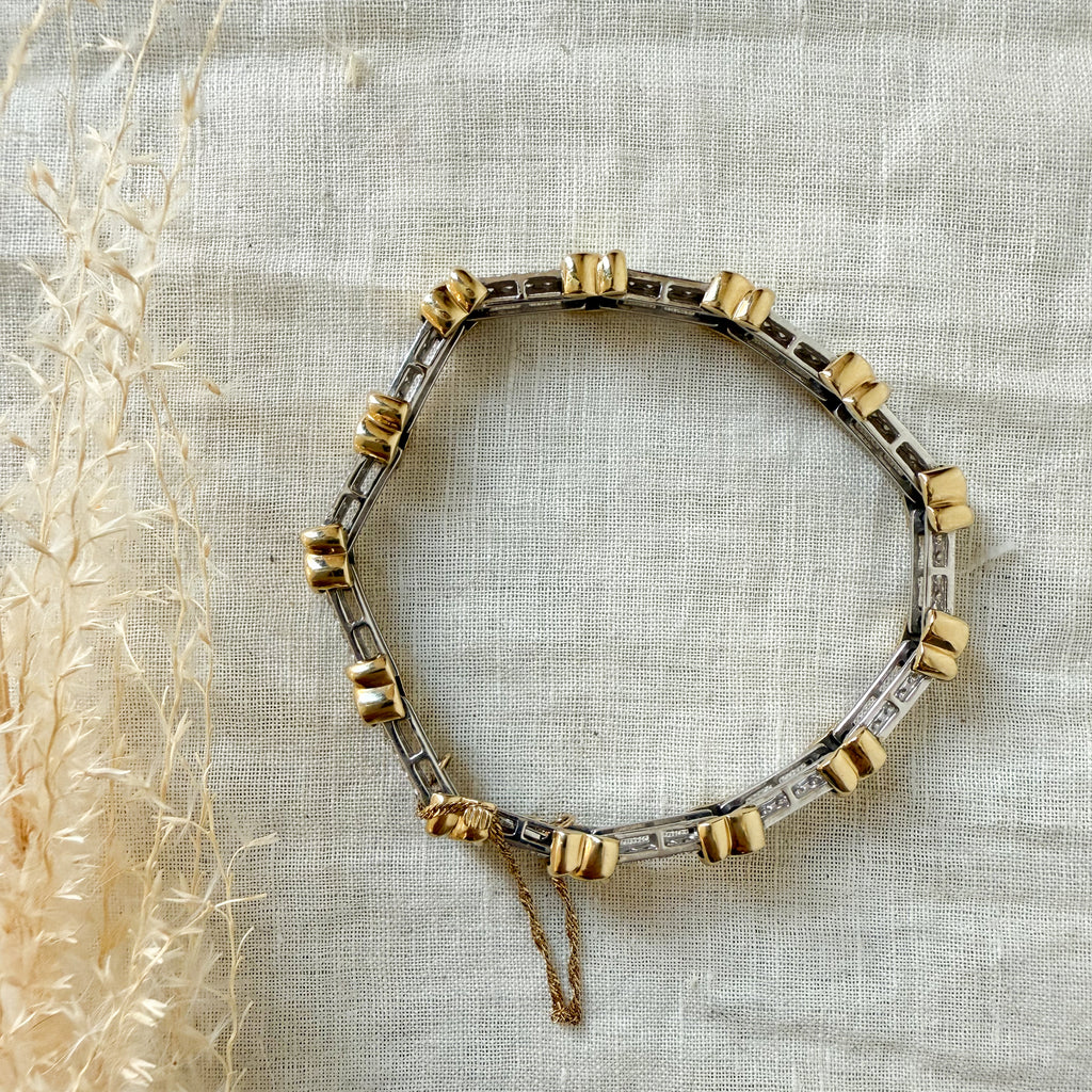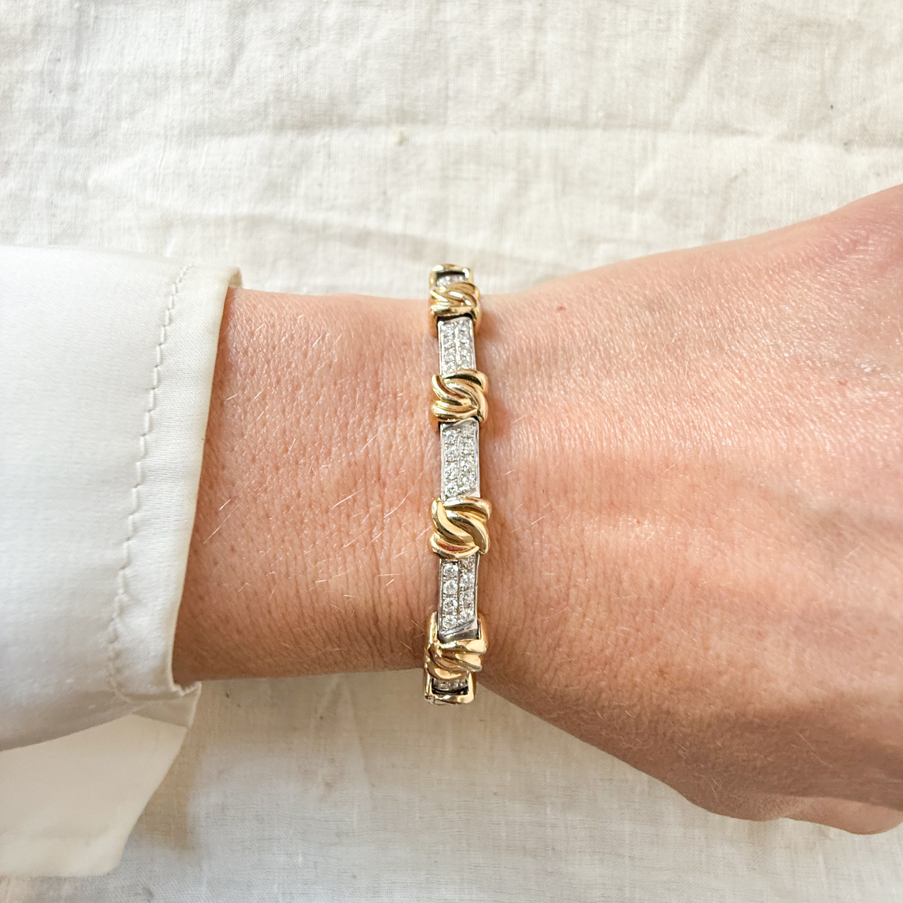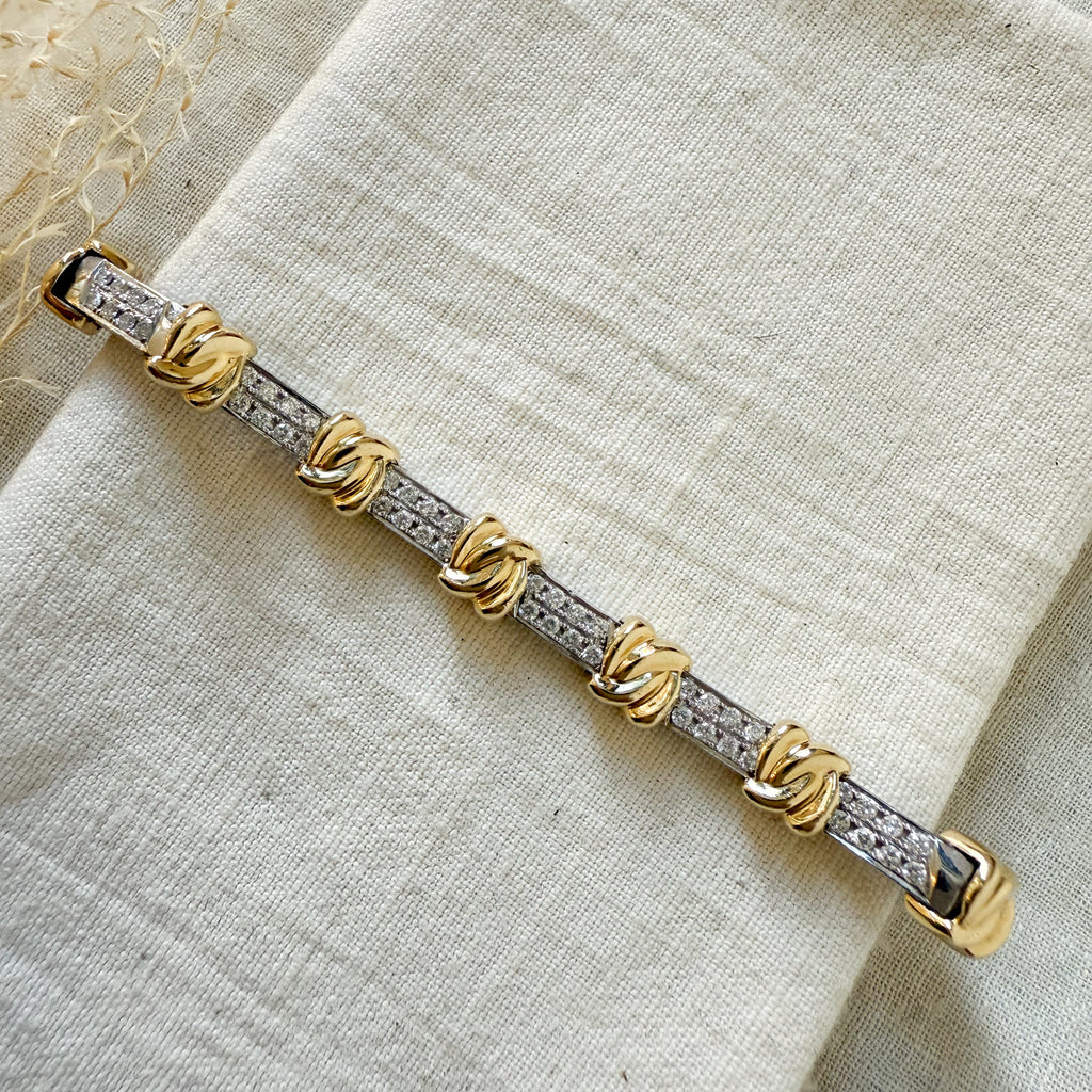 14k yellow and white gold diamond set link bracelet