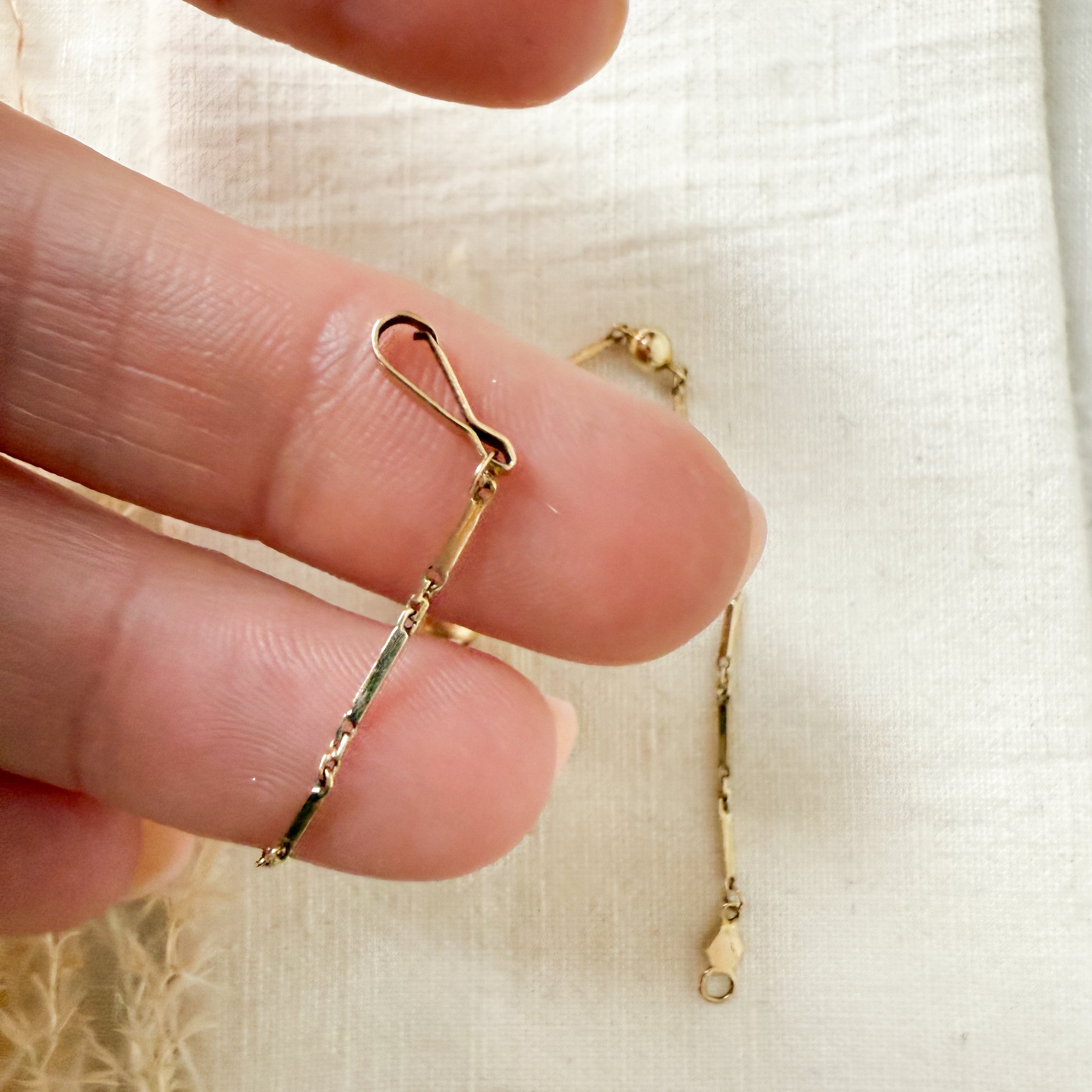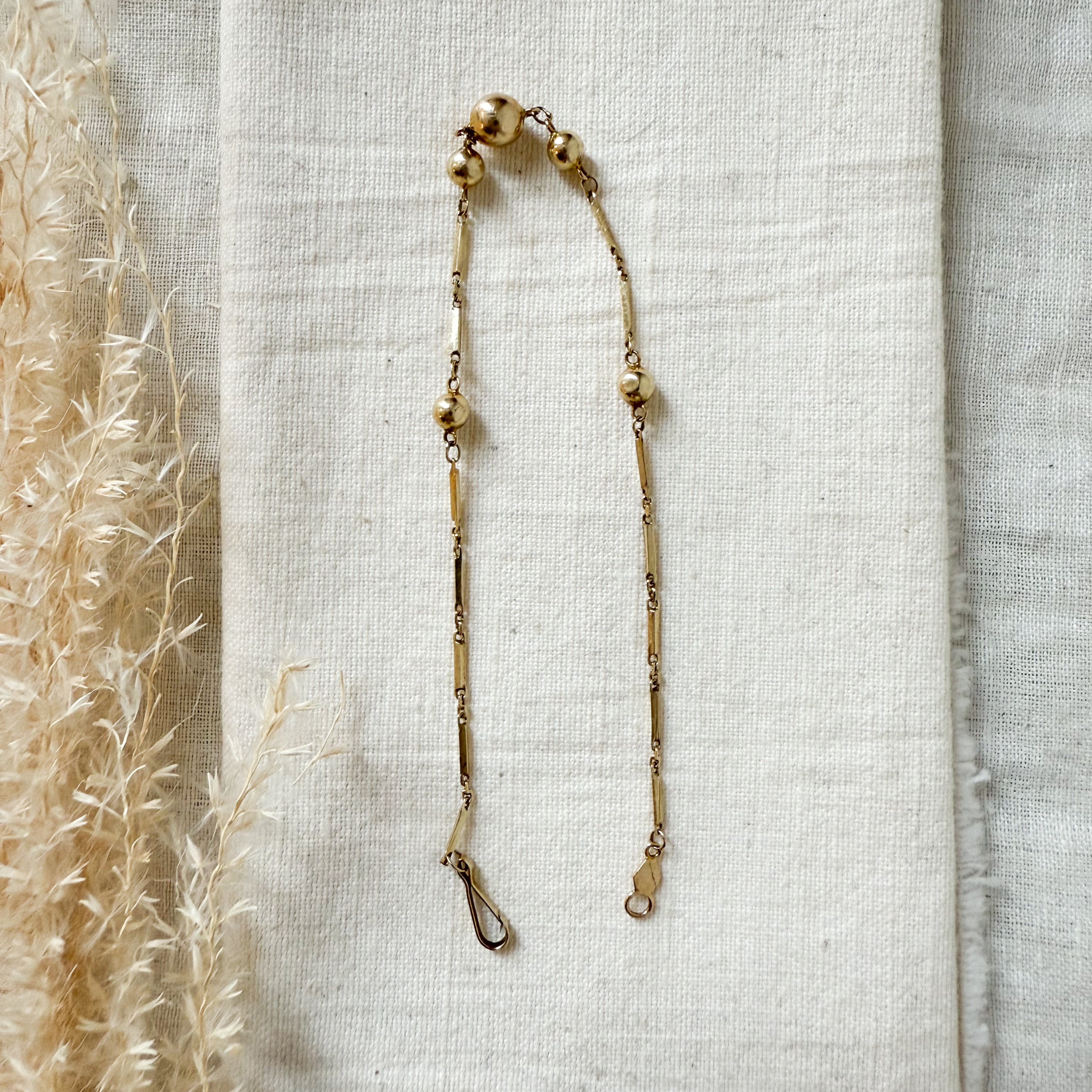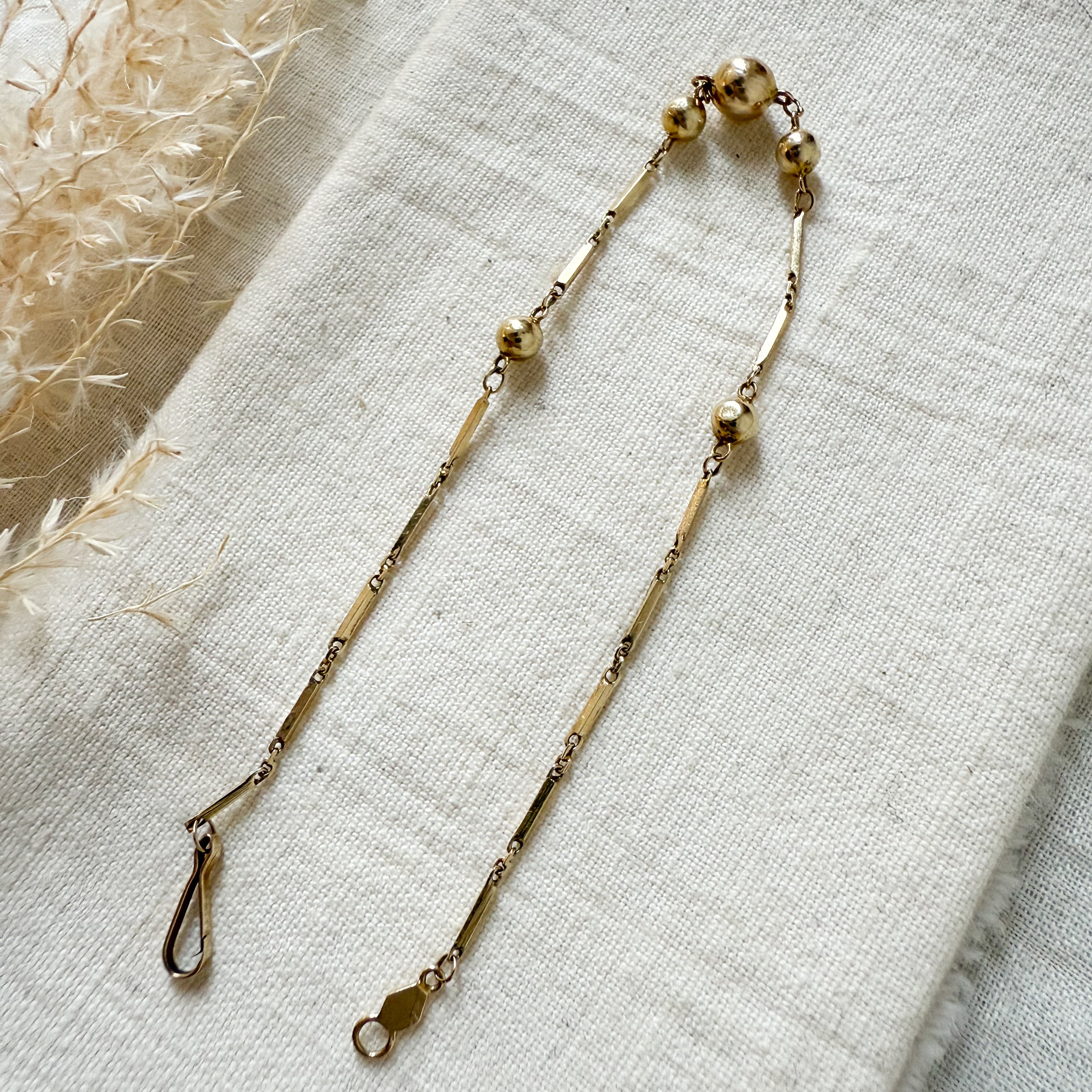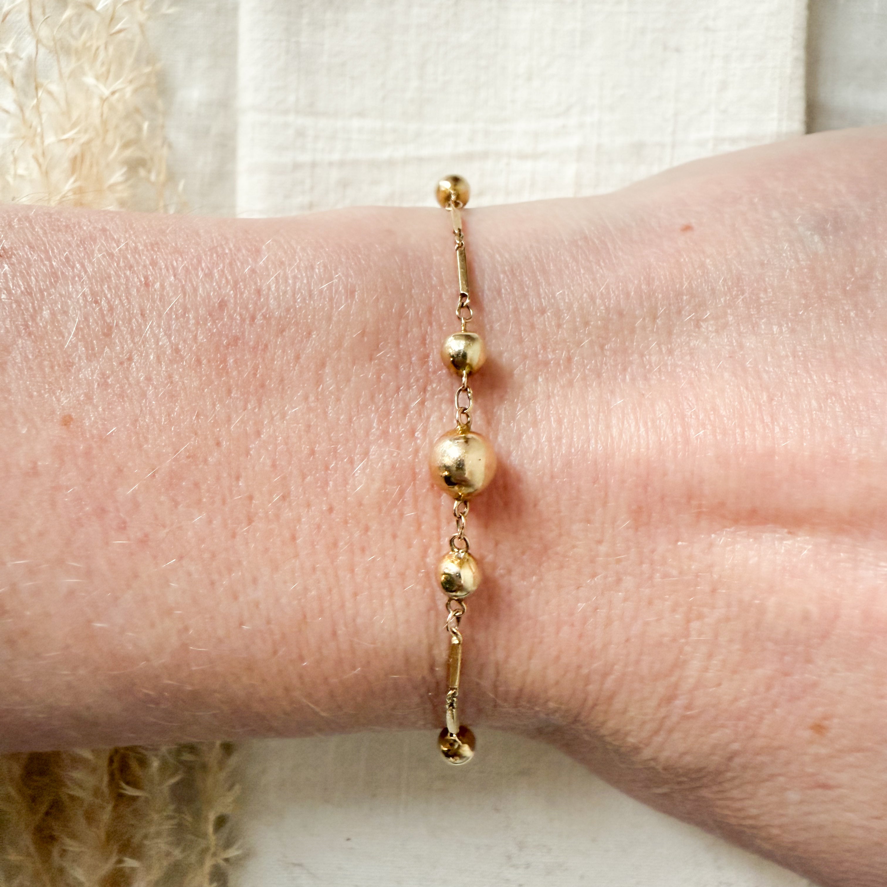 Dainty bar link bracelet with 5 graduated gold beads The bracelet is 7" length. Total weight 1.7 grams.