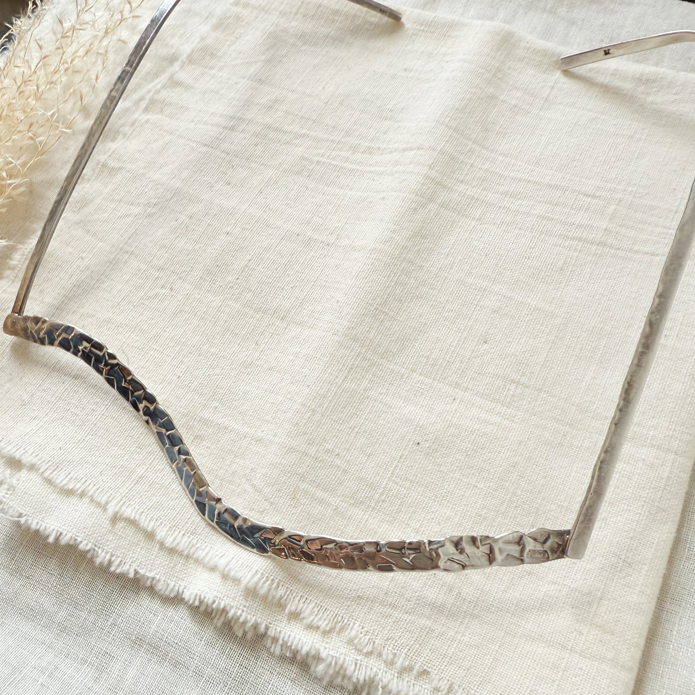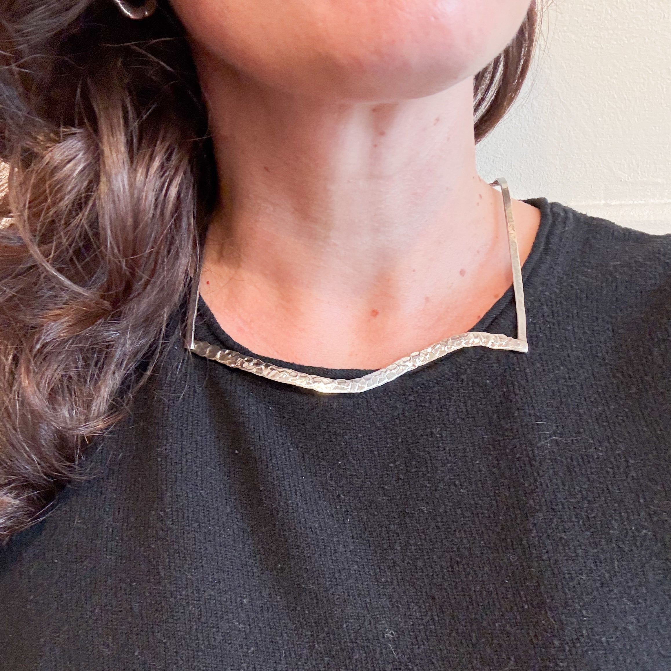 Square form with a double wave design. Collar measures 5" x 5.75" width. Weighs 18 grams