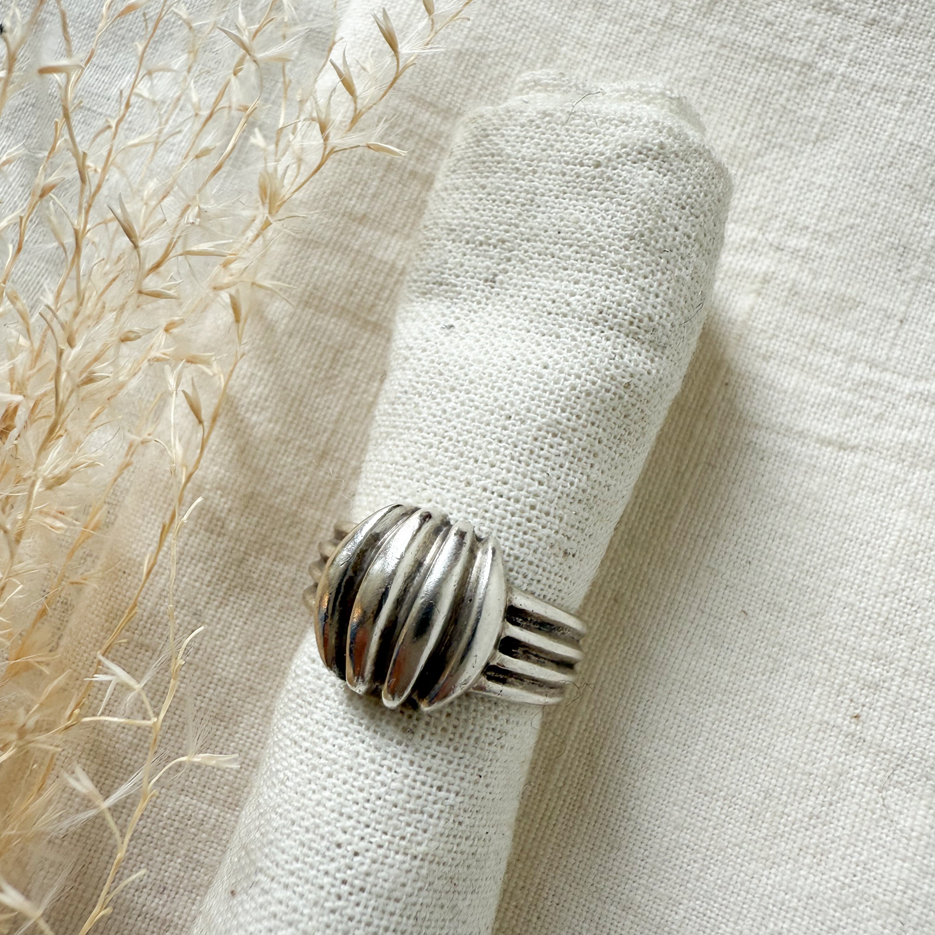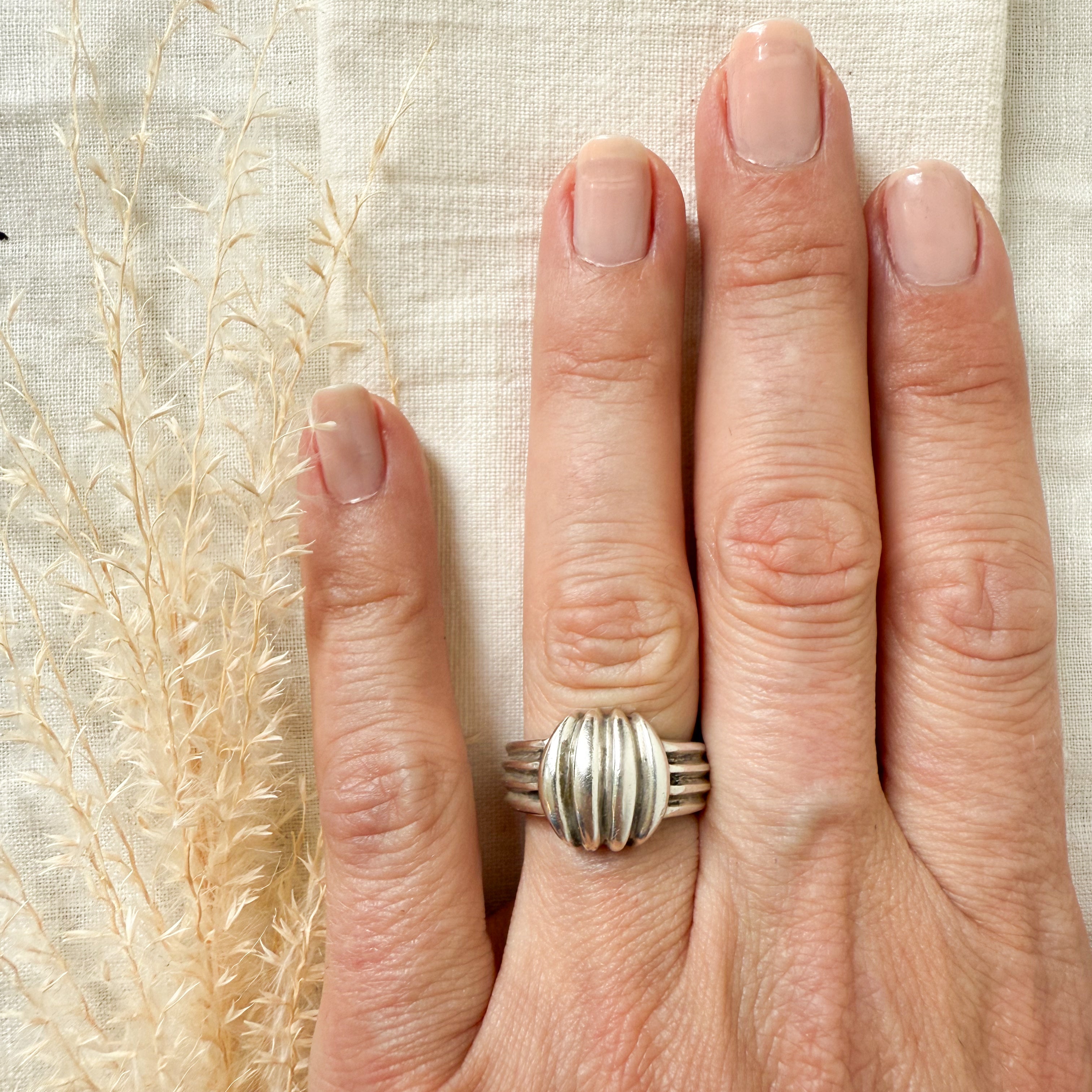 Measuring 7mm width, 12mm at front. Size 6.5. Total weight 5.6 grams