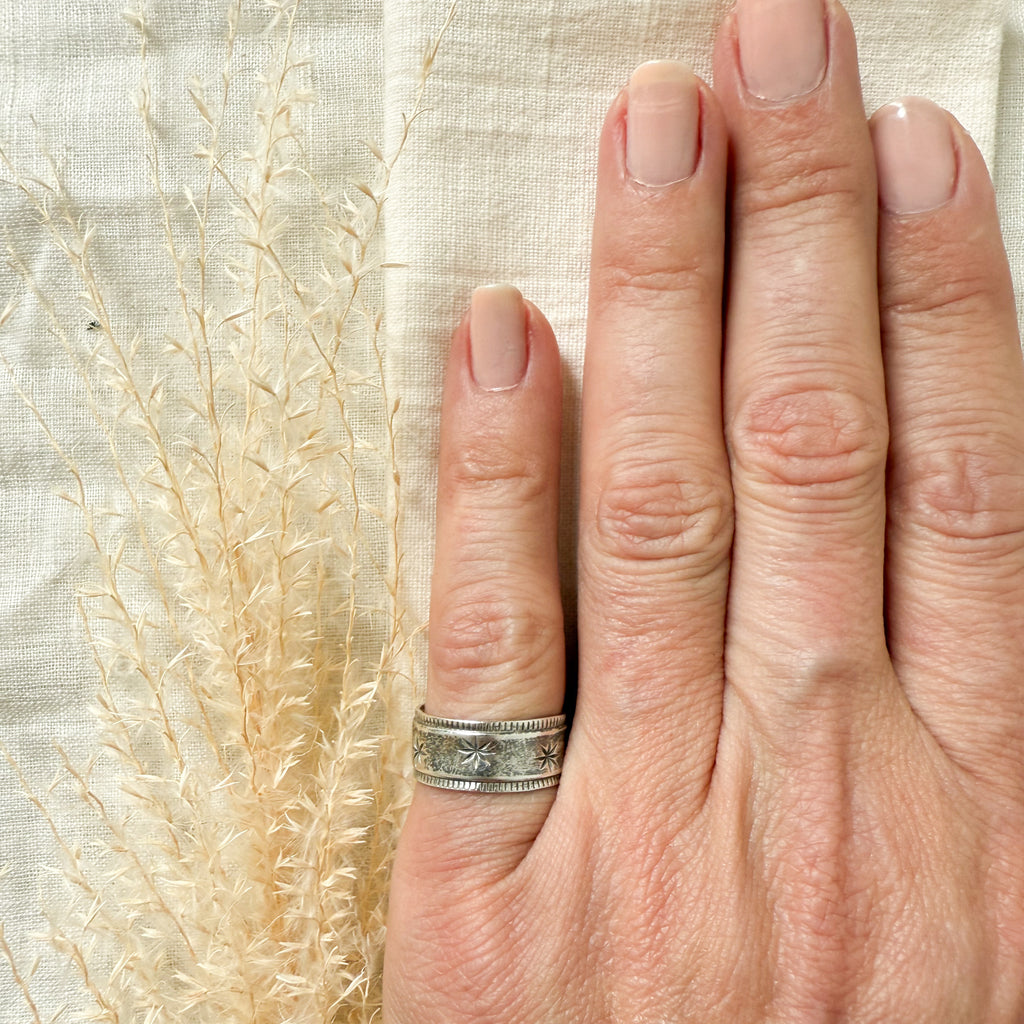 Measuring 8mm width. Size 5. Total weight 2.4 grams