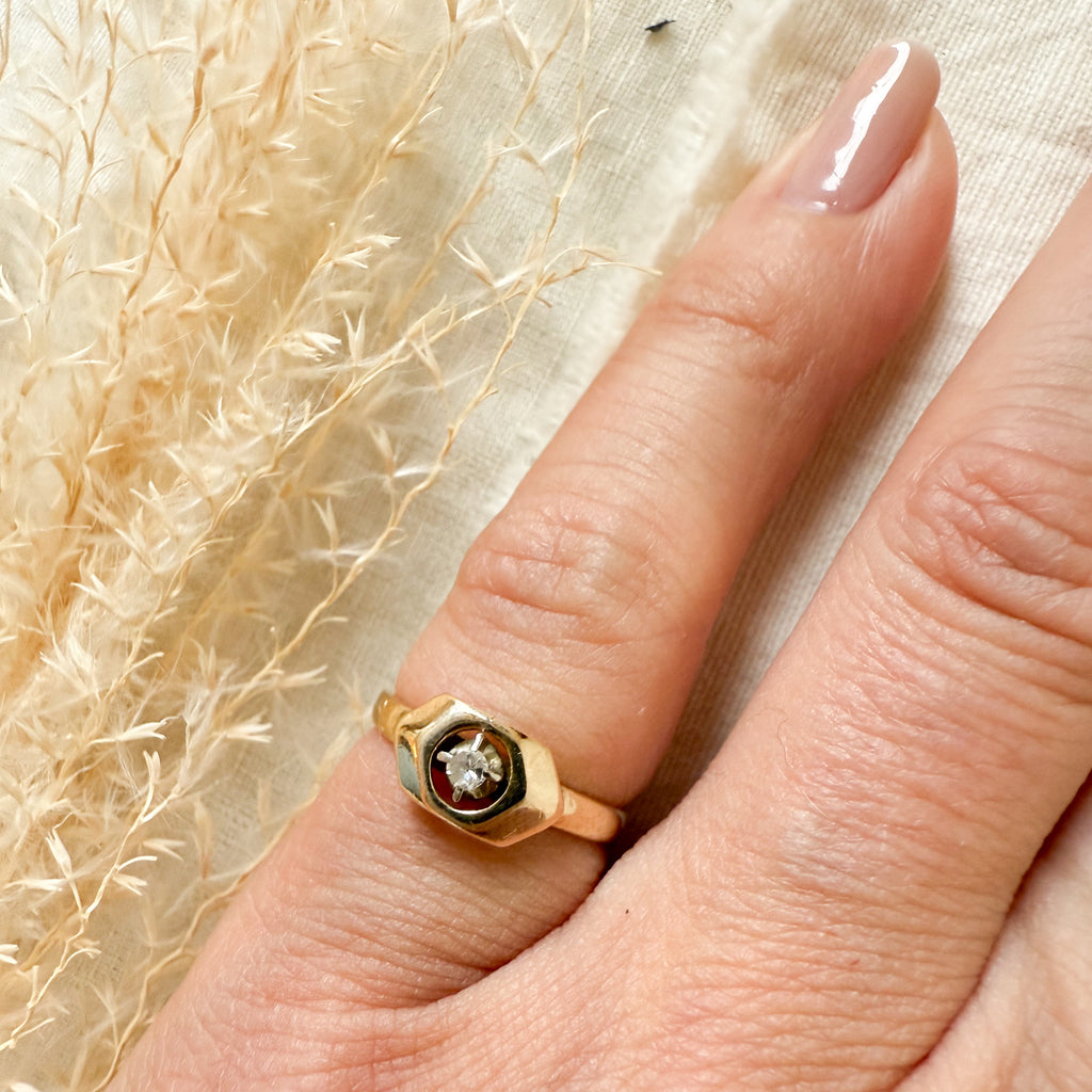 14k yellow and white gold diamond solitaire ring