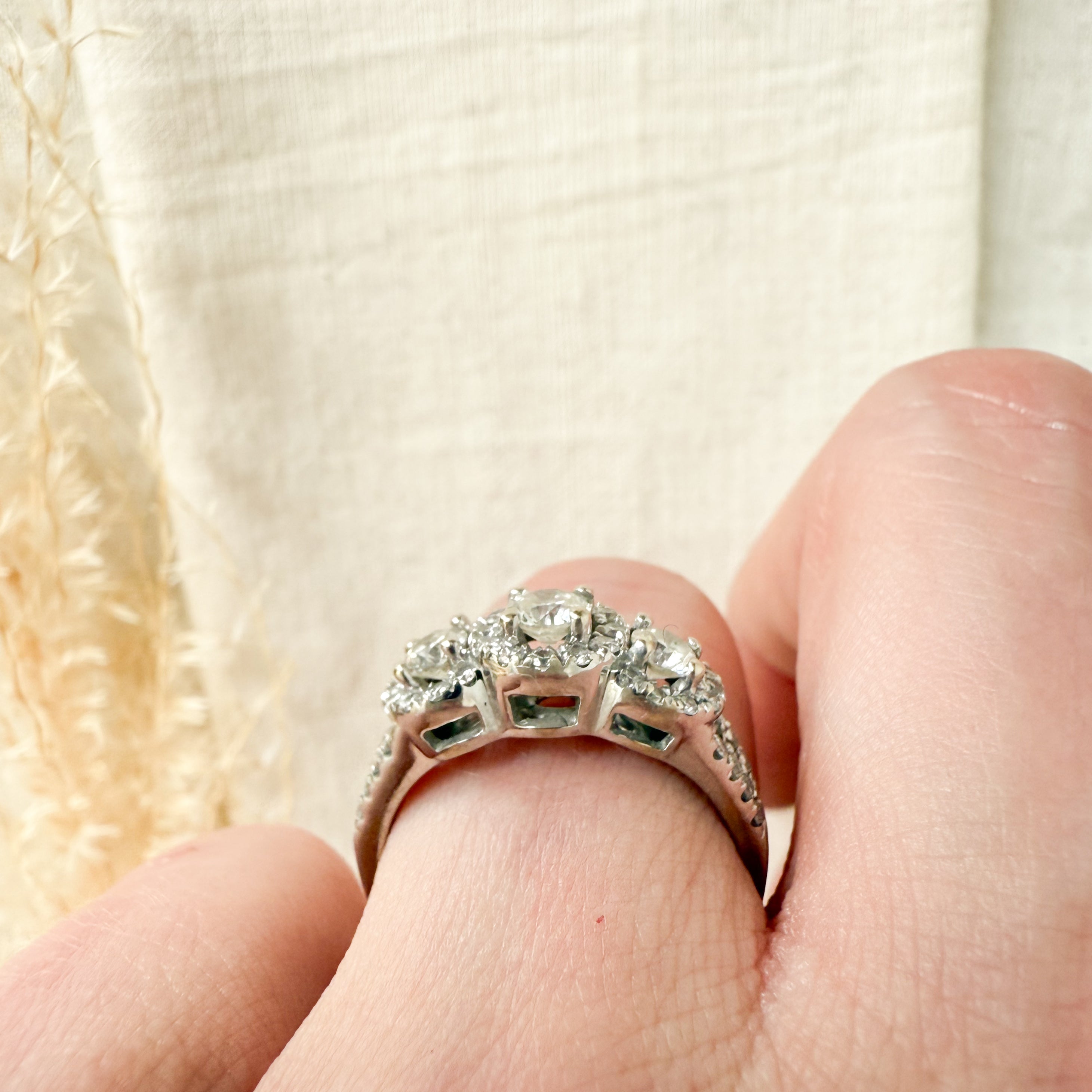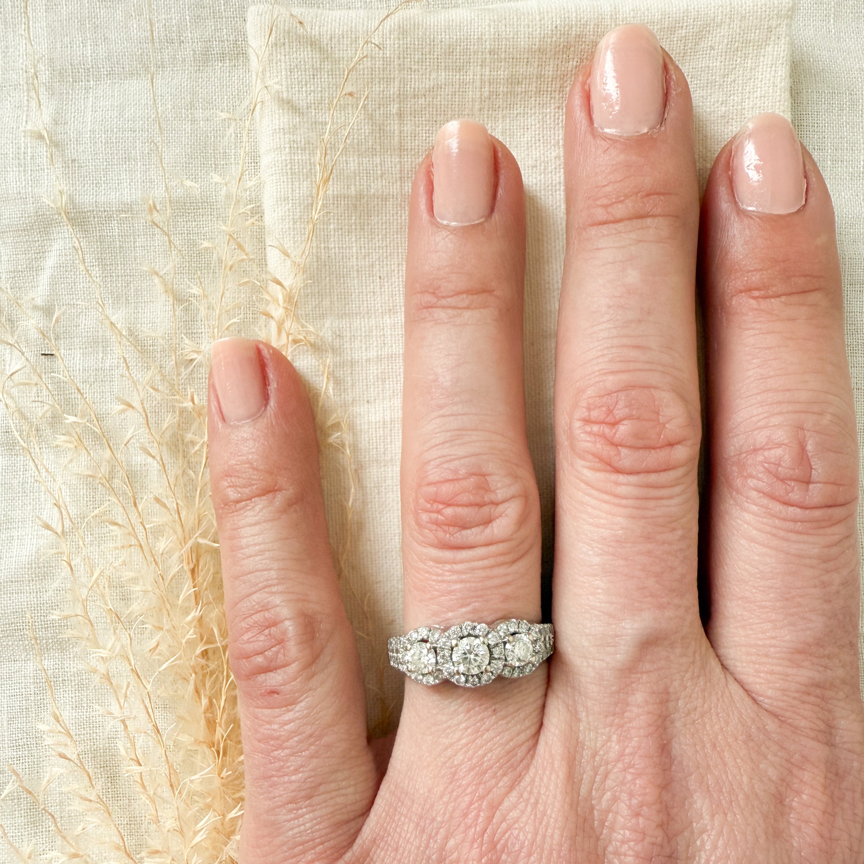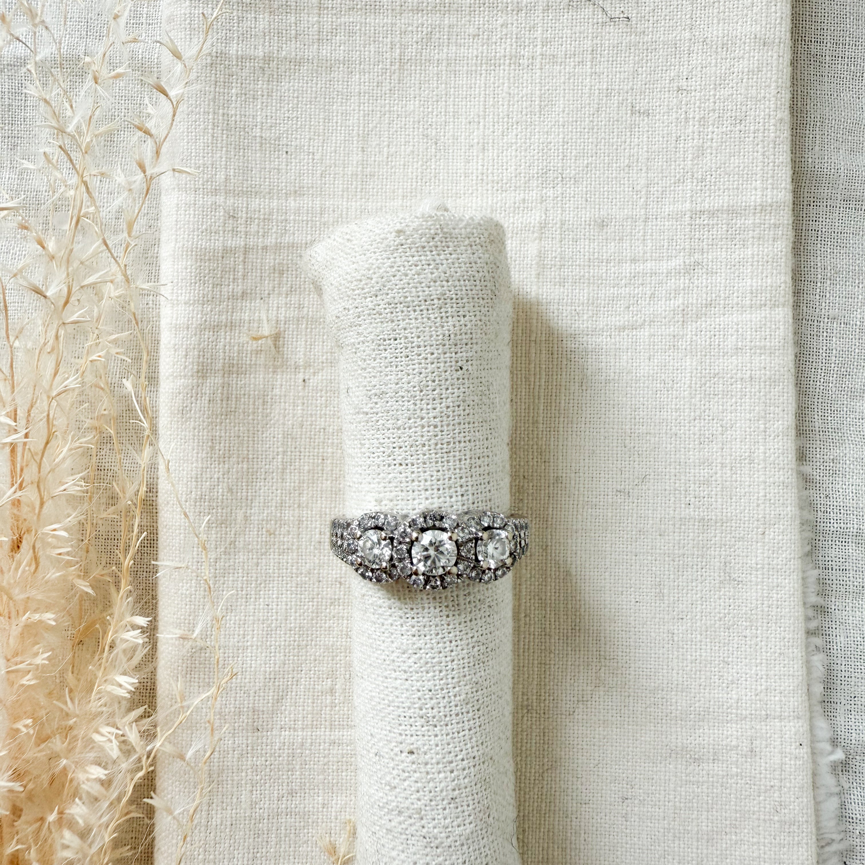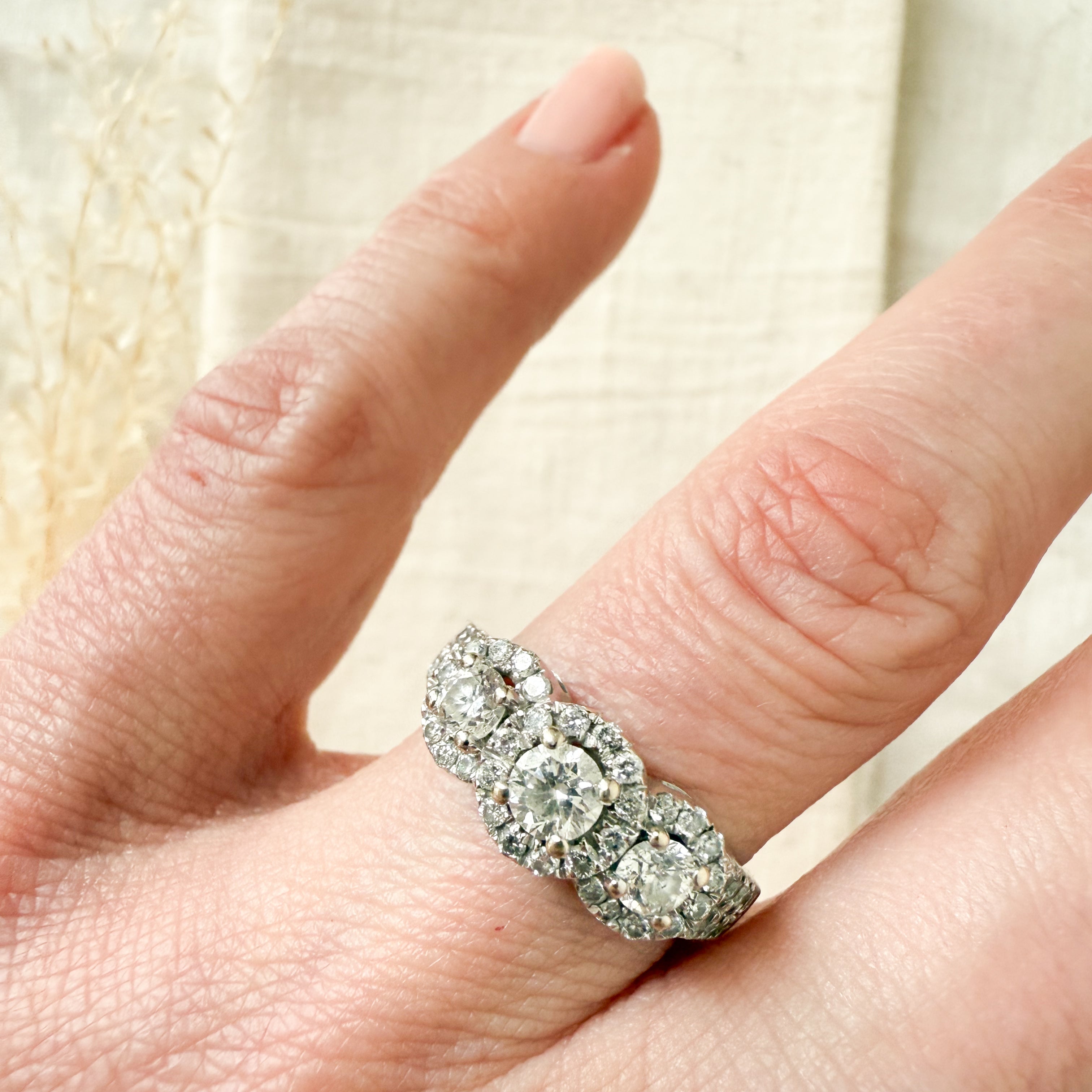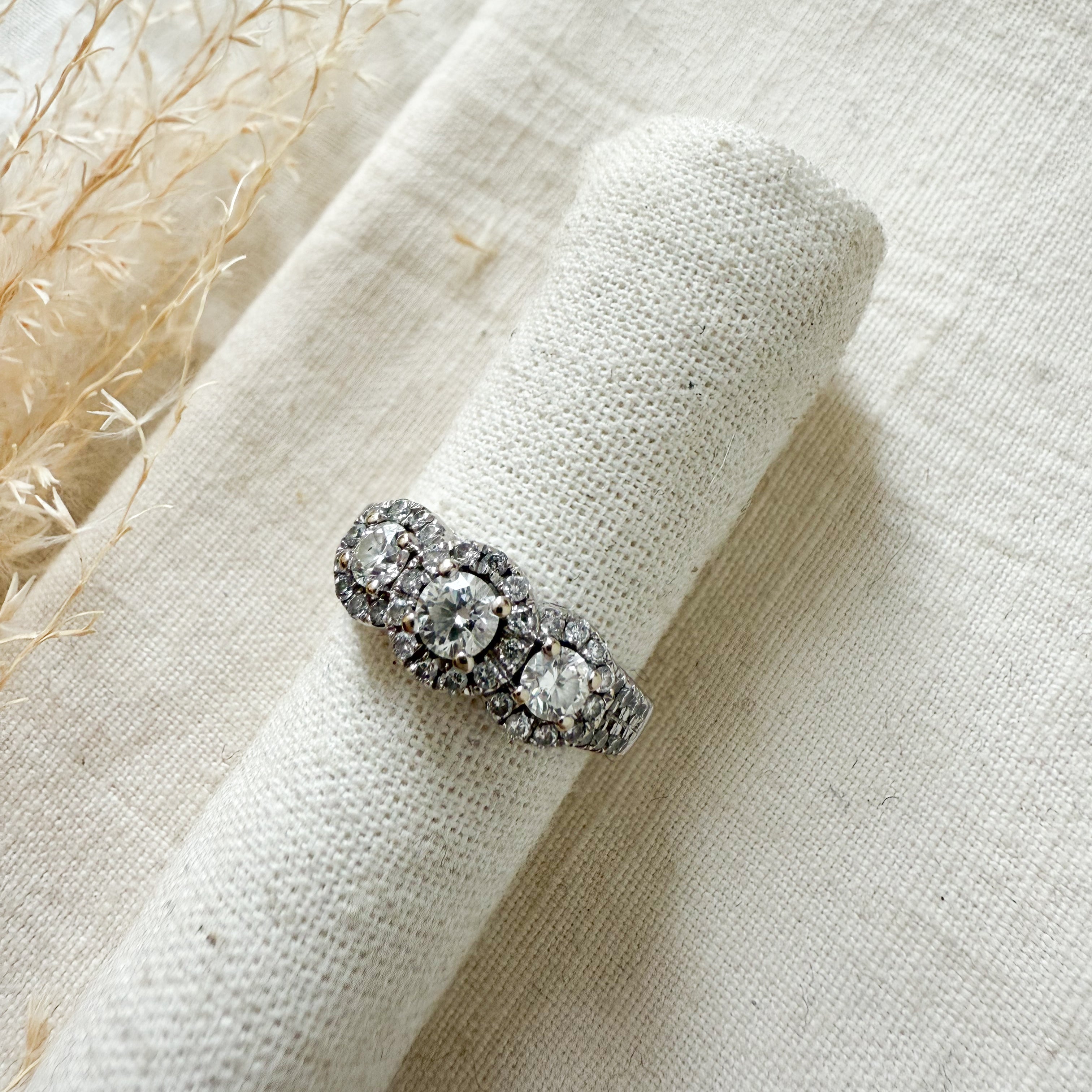 14k white gold diamond trinity halo ring