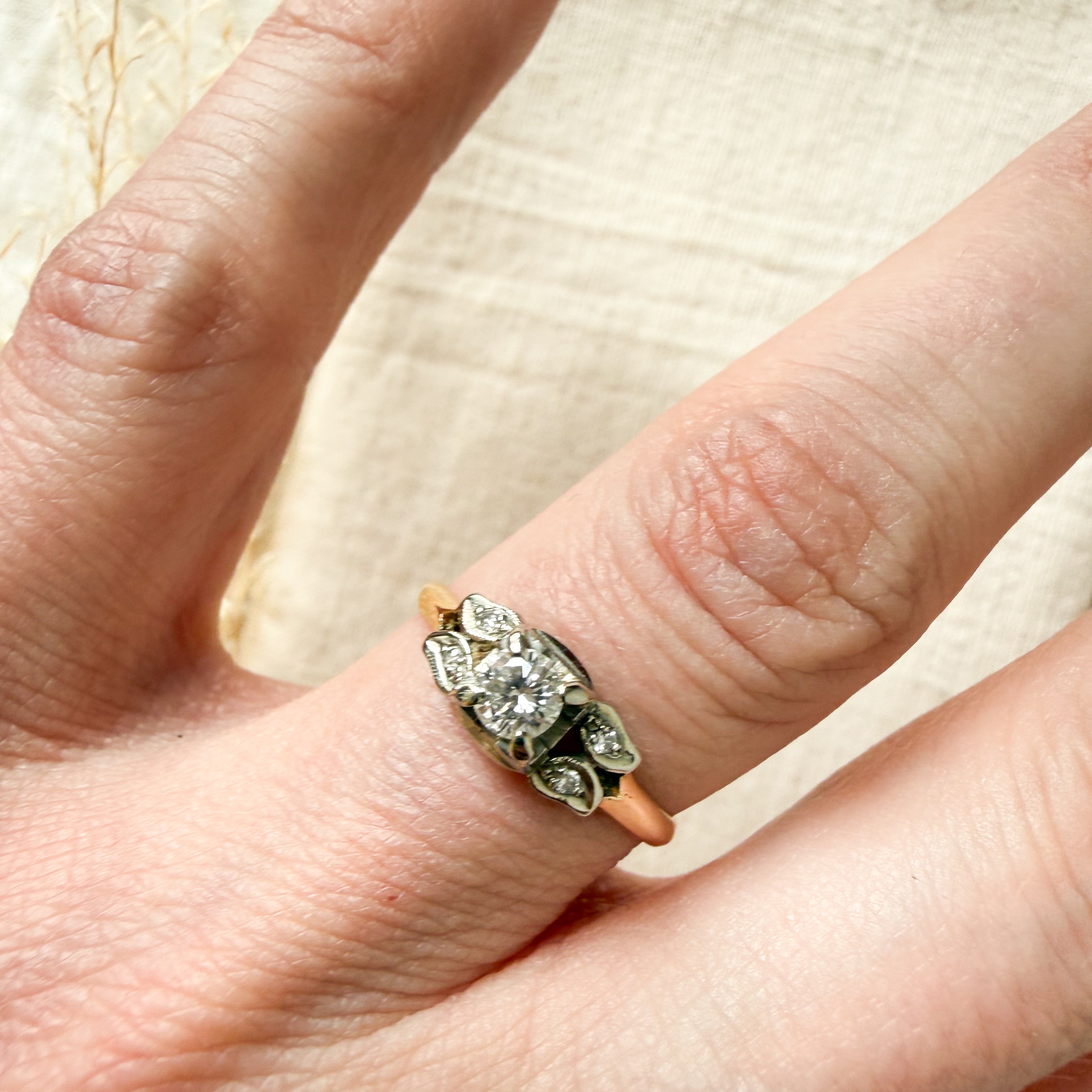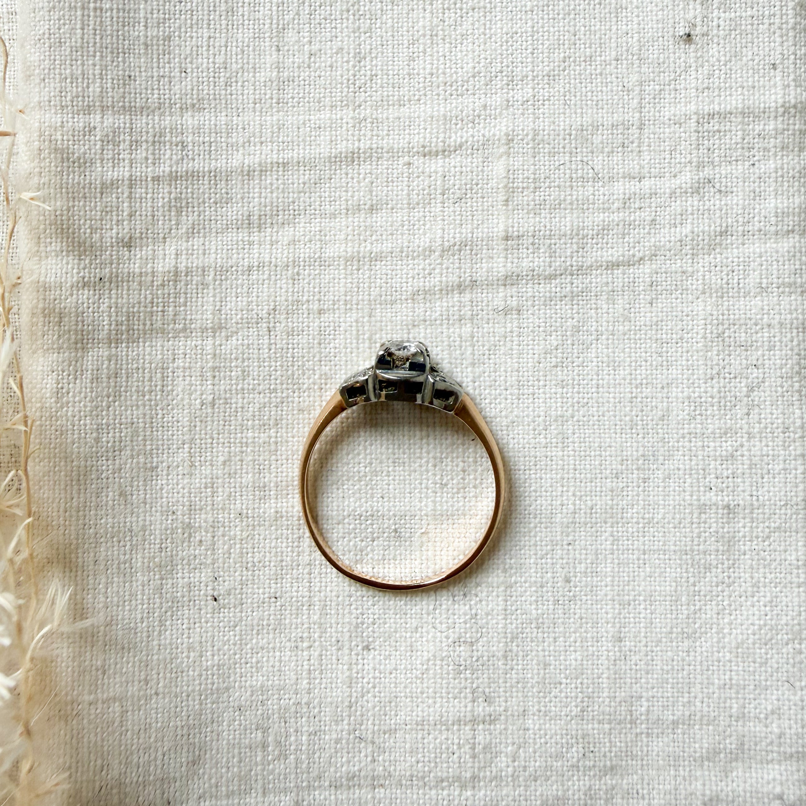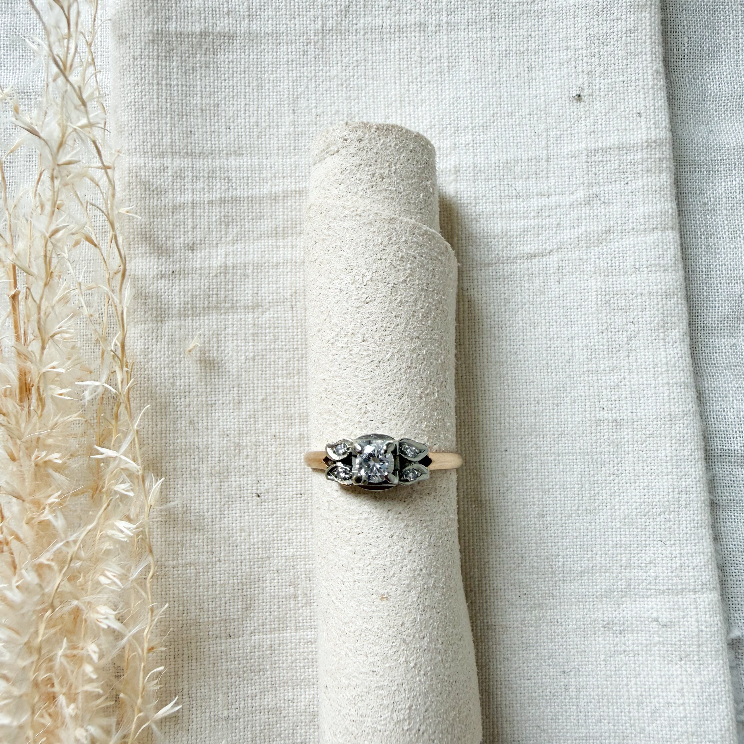 14k yellow and white gold diamond set ring
