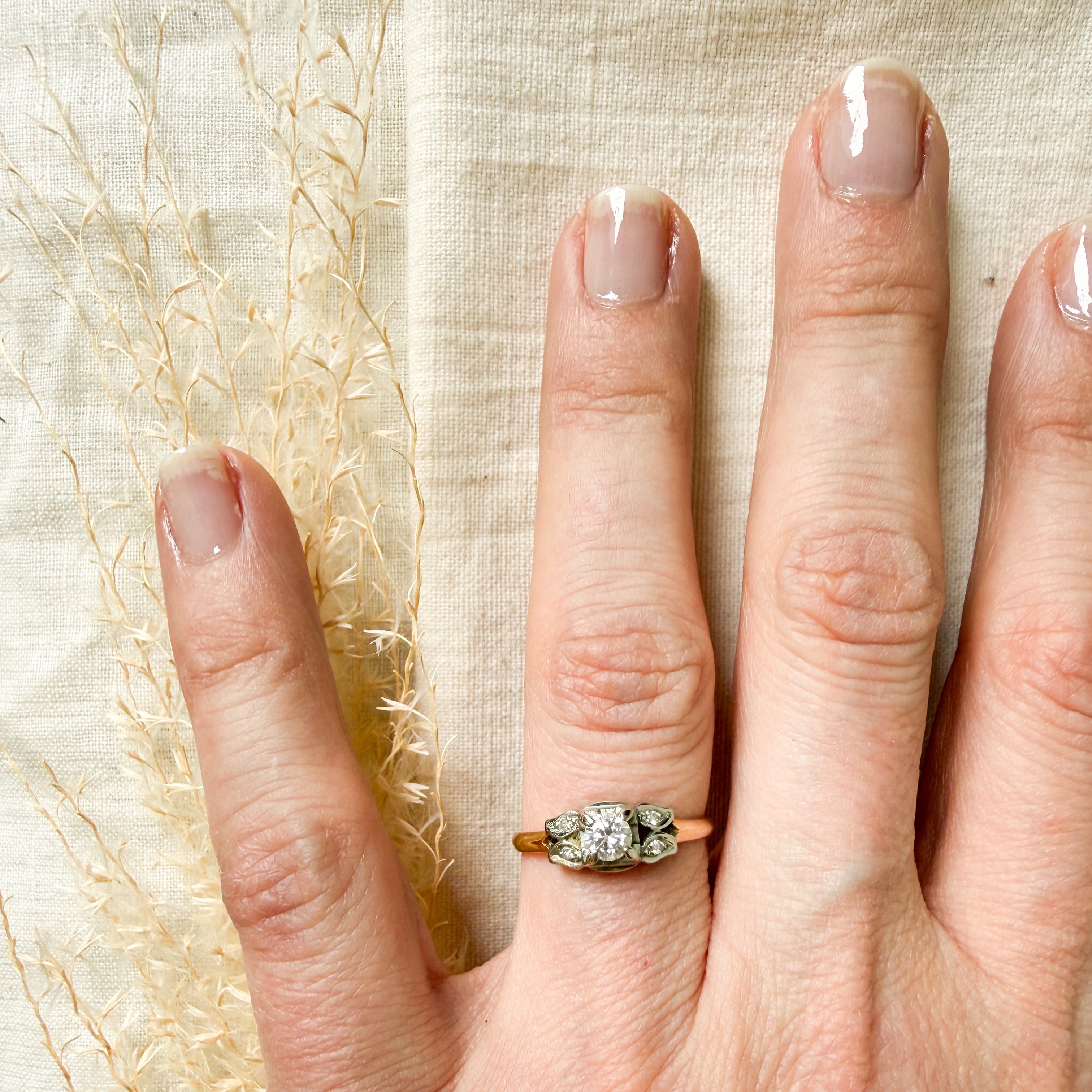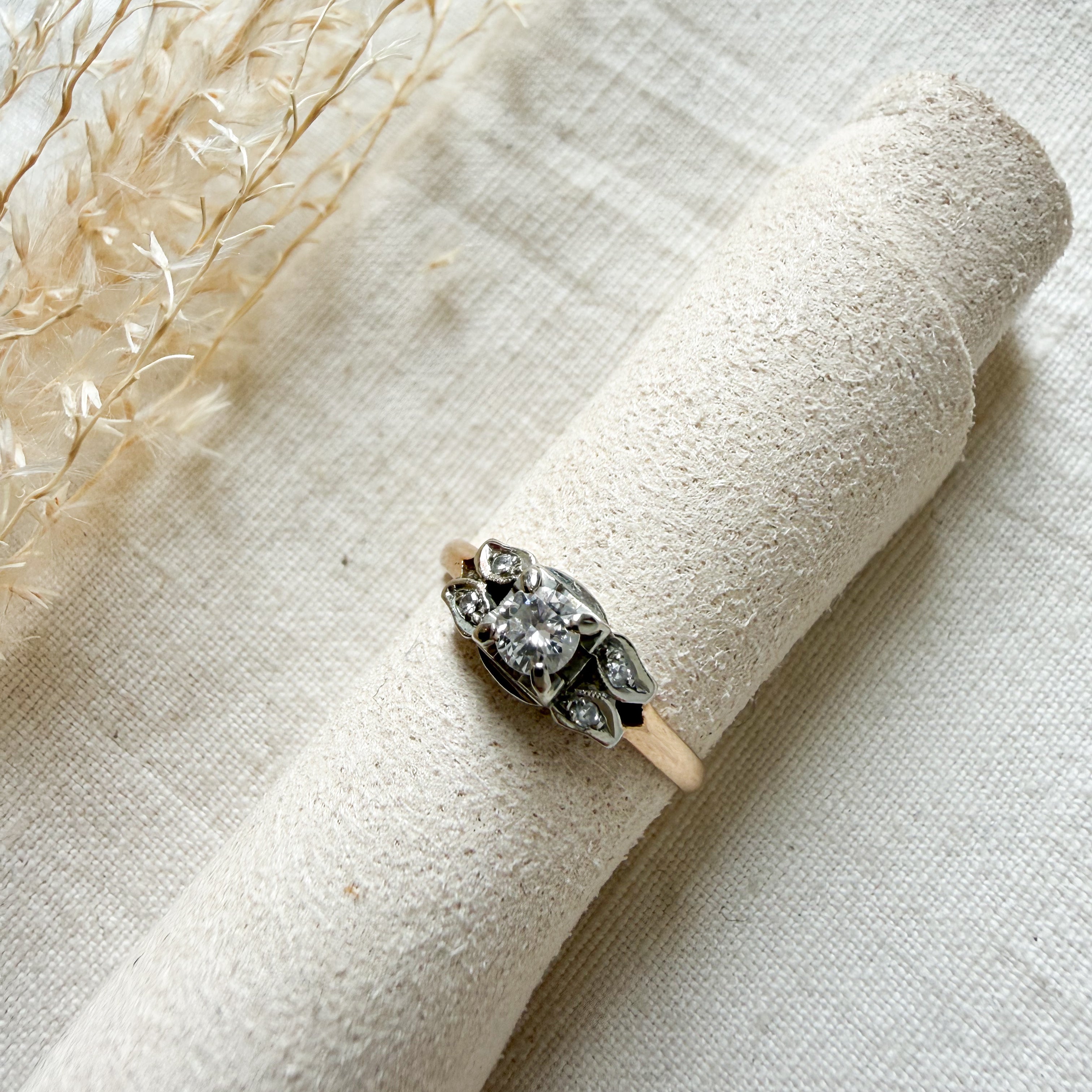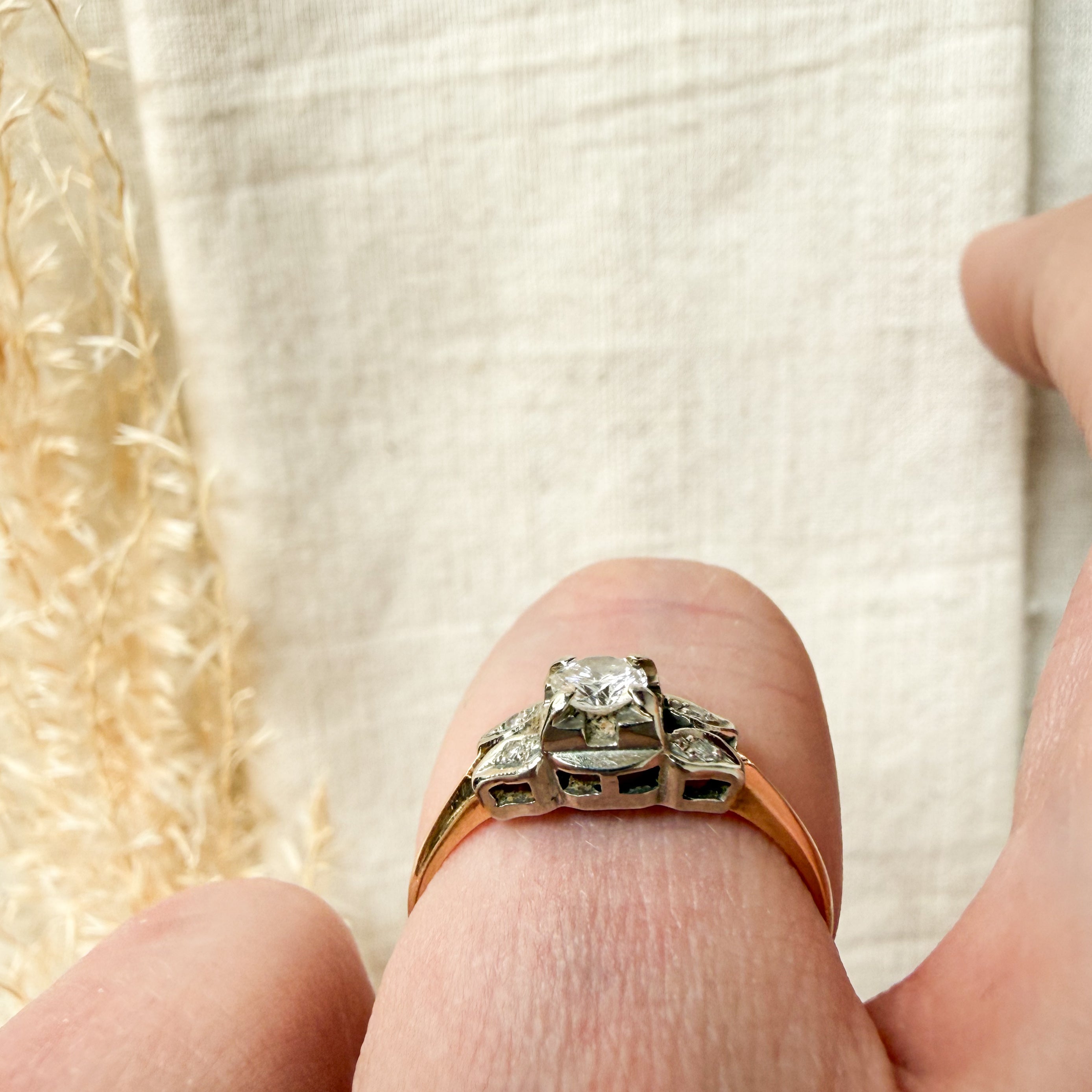 14k yellow and white gold diamond set ring
