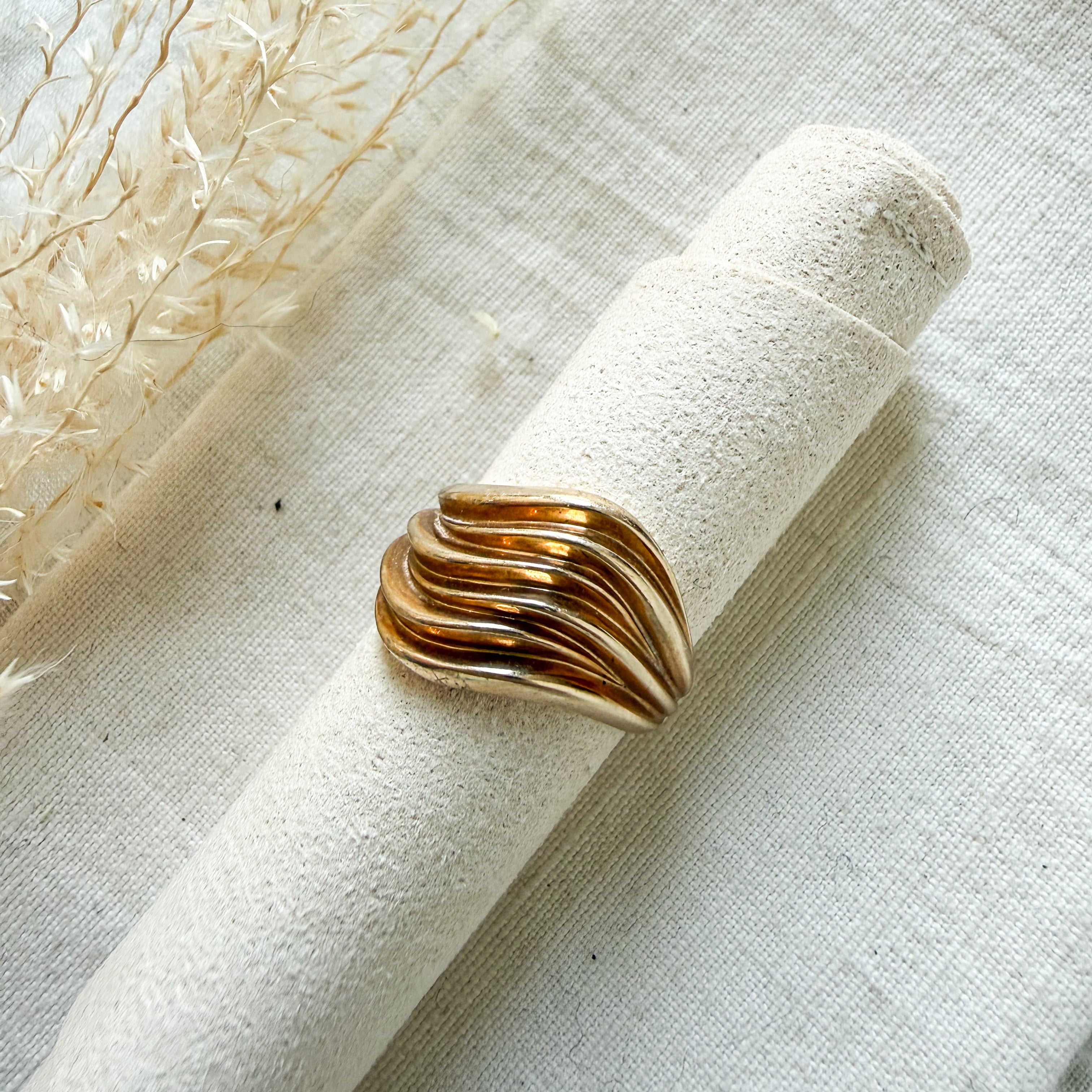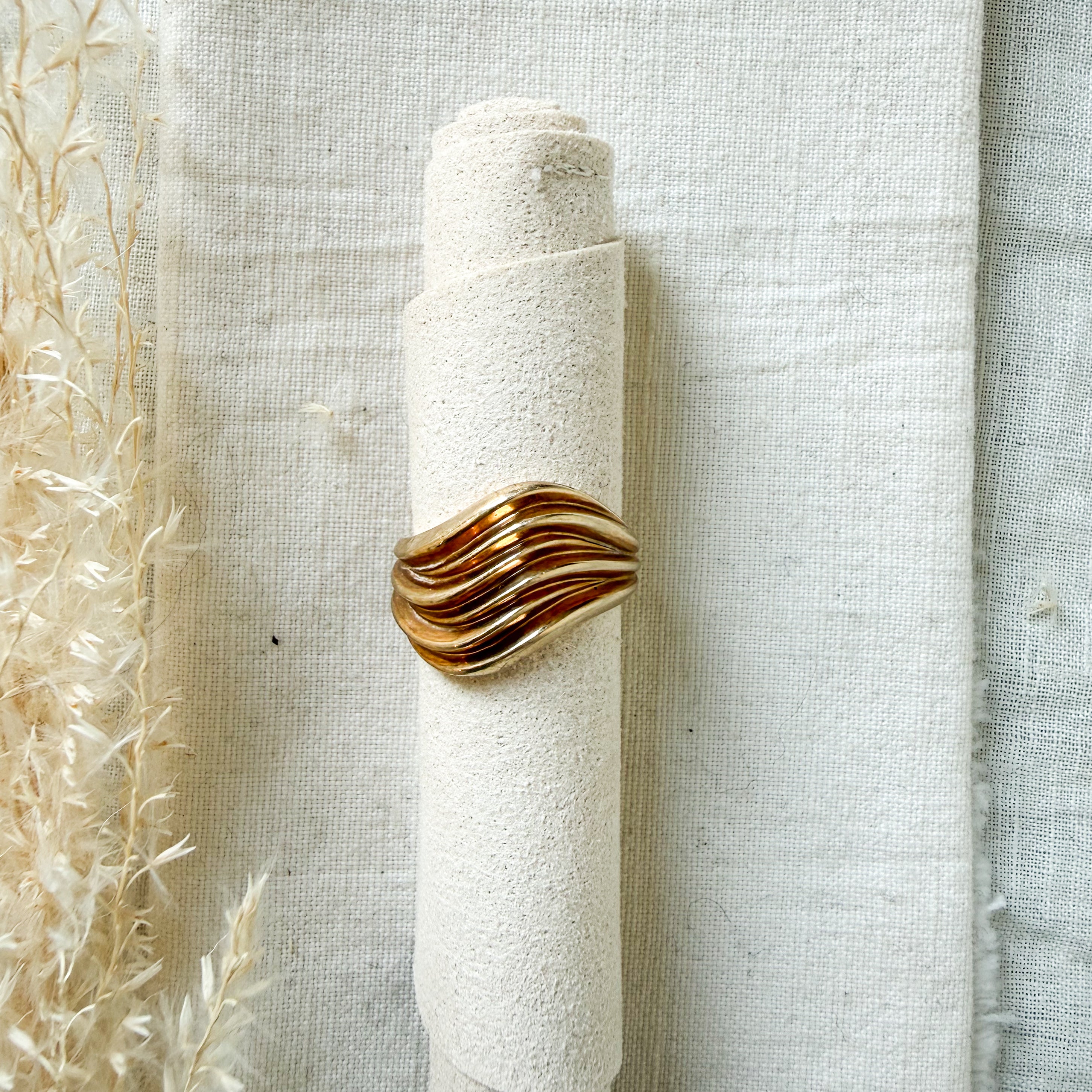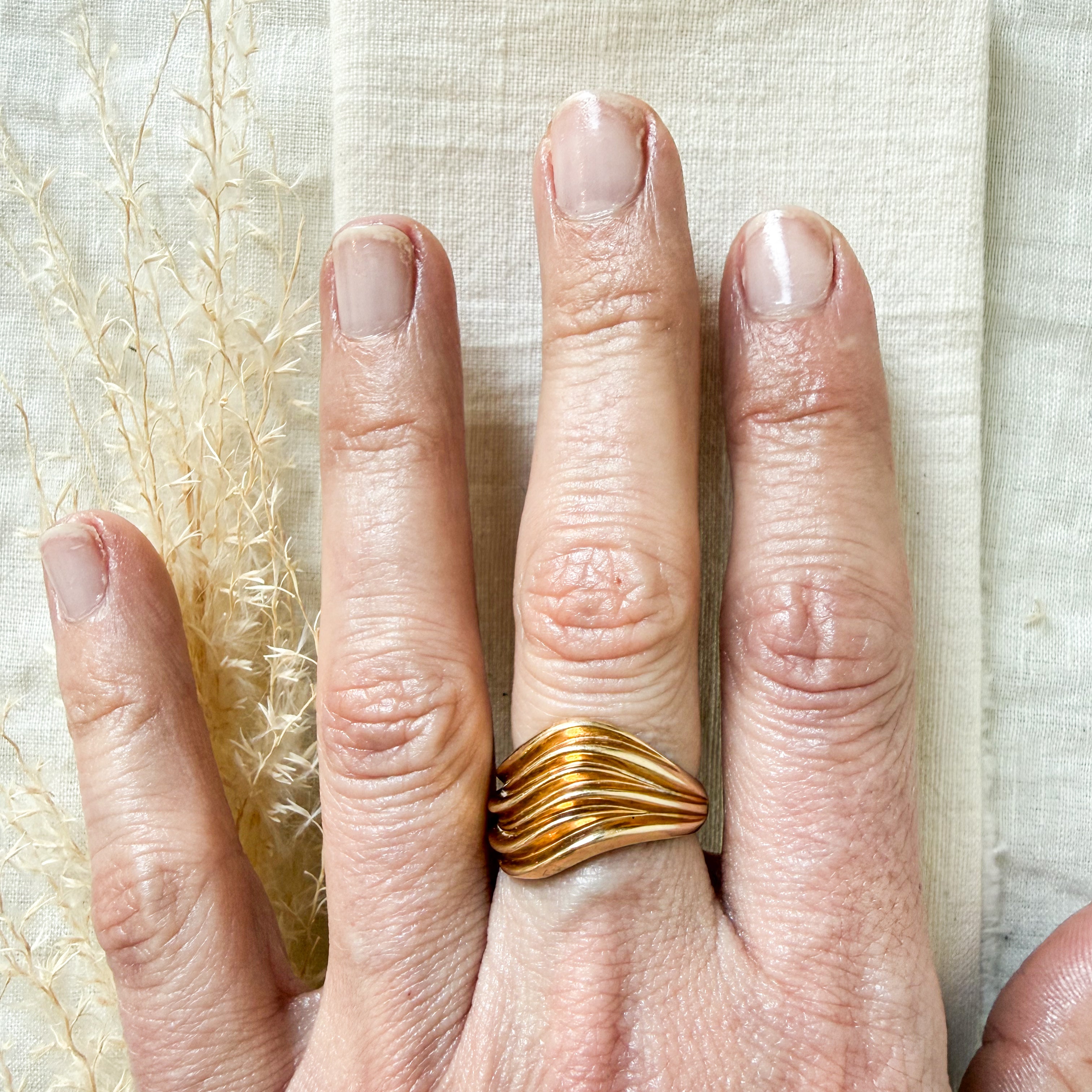 14k yellow gold diagonal design ring