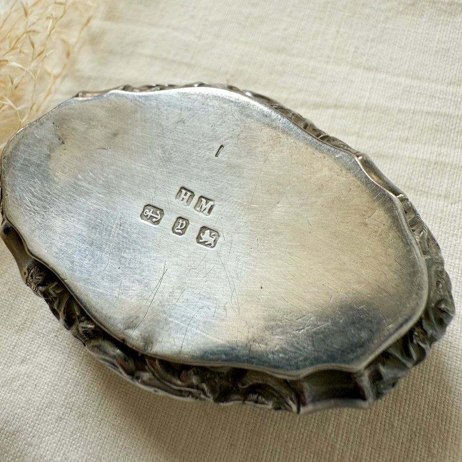 Floral engraved design, 7 x 4.5 x 2.5 cm. I. Birmingham hallmarks circa 1847. weighing 33.5 grams.